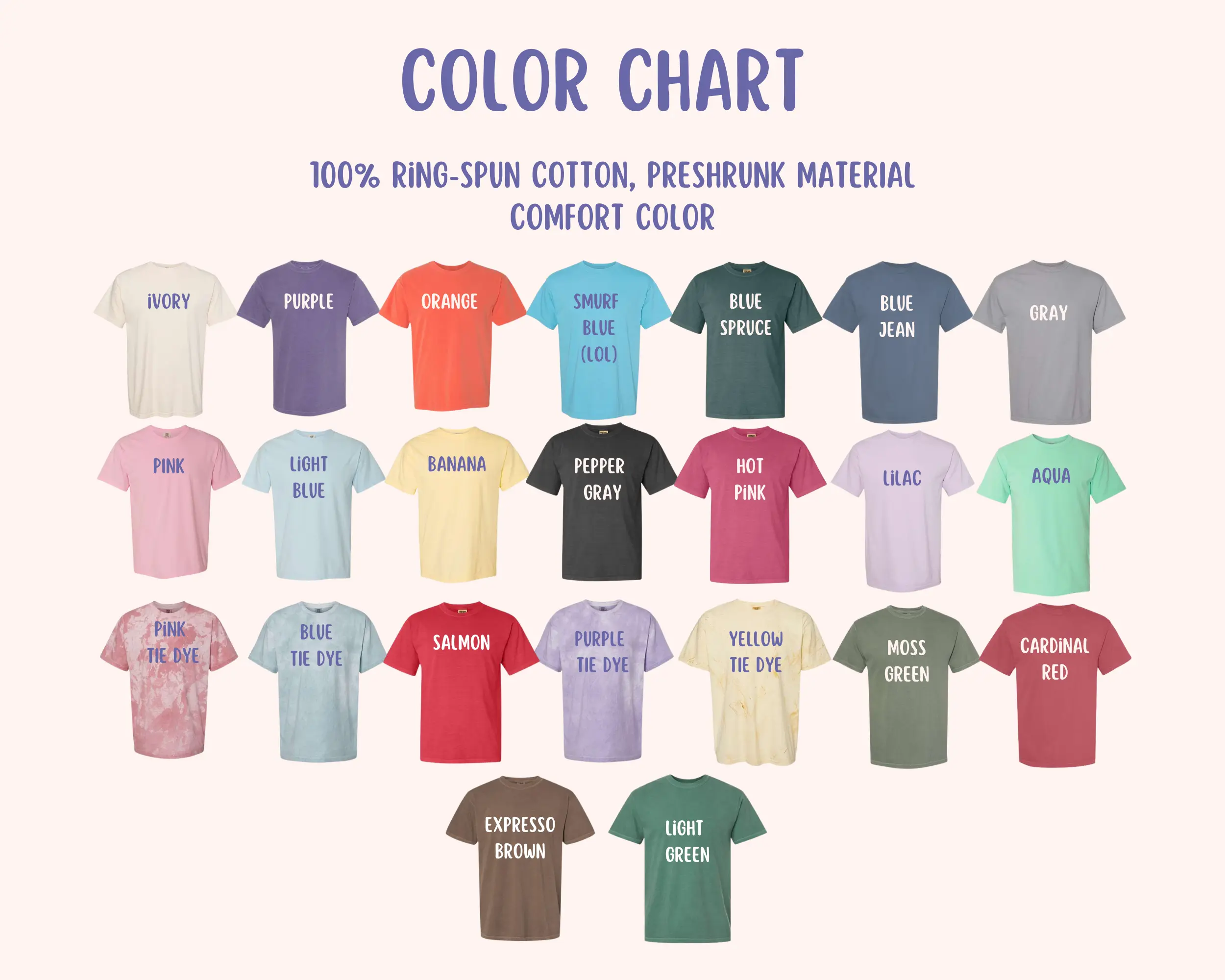 My sisters and I bought a shirt for each of ourselves and two iron on patches. We love them! The colors of the shirt are vibrant and the embroideries are perfect! They’re really soft but a good mid weight material, which is expected of comfort colors. The seller is also a sweetheart which is a plus!