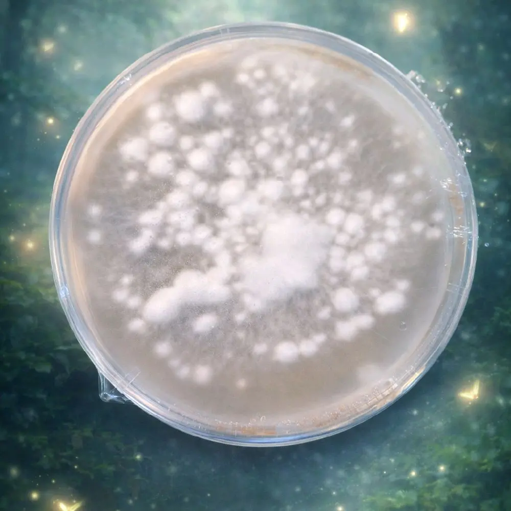 This strain is known for its thick, clustered, almost “popcorning” growth… forming constellations across the plate like forest stones rising through moss. A little wild, a little stubborn, and beautifully alive.