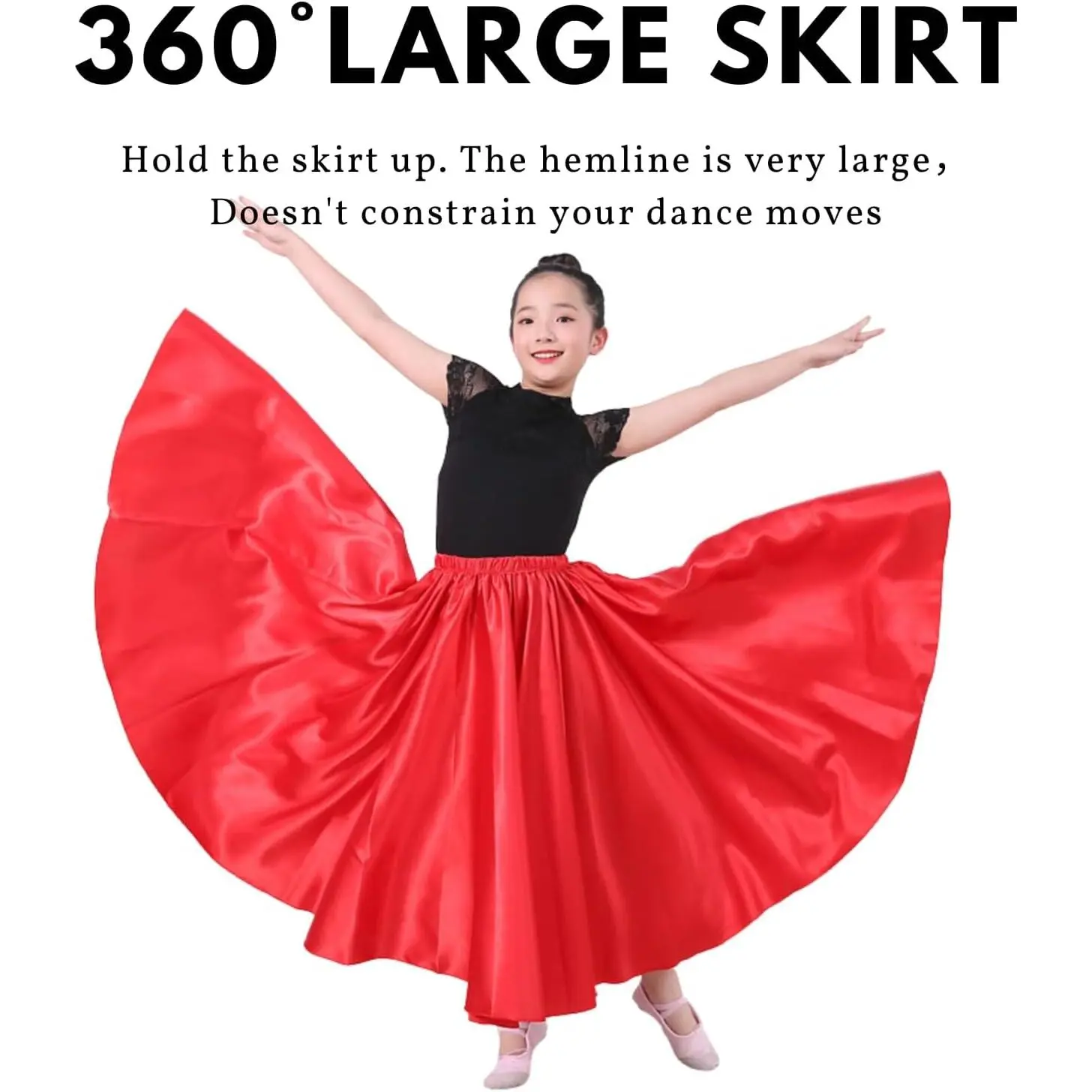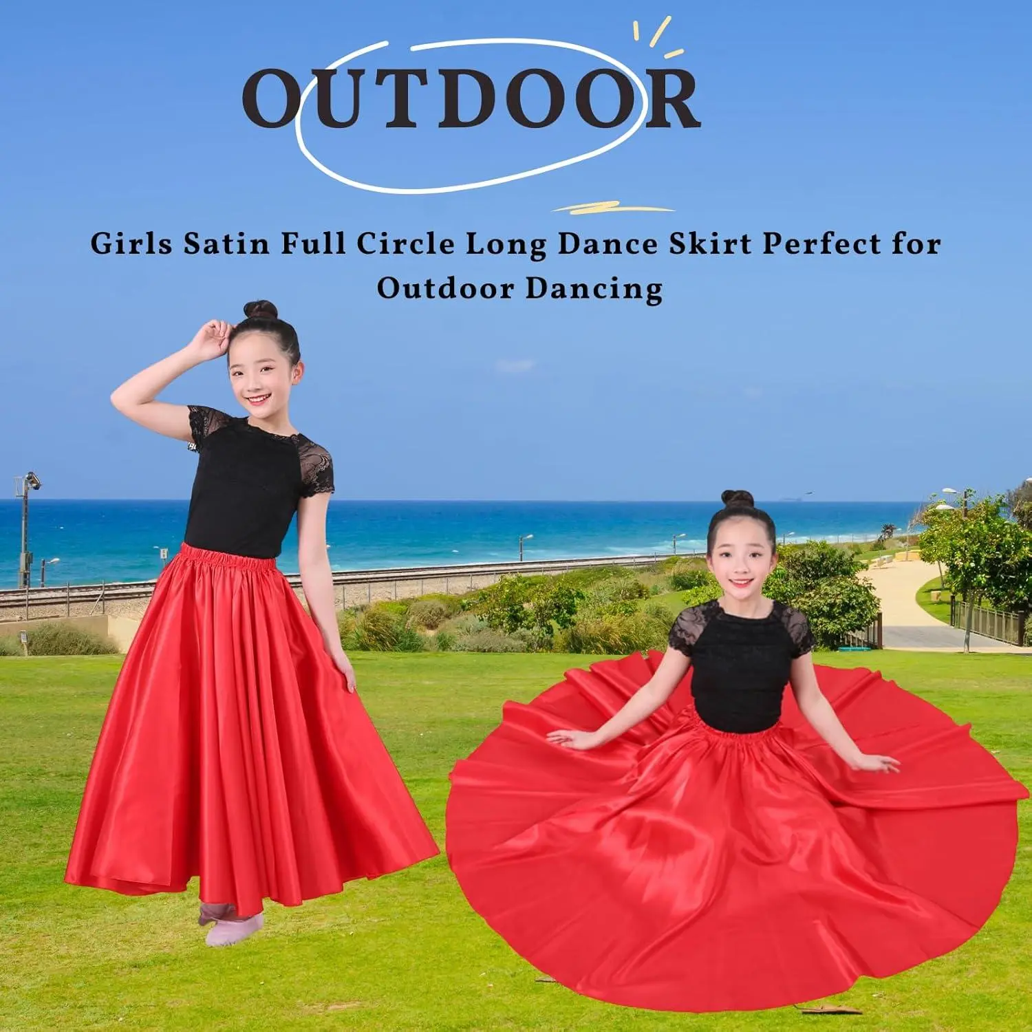 Girl's Satin Full Circle Long Dance Skirt Ankle Length Shiny Swing Skirt for Ages 8-12 Years - Perfect for Belly Dance Ballet Performance Party Costume Elegant Flowy Lightweight Comfortable Formal Wear
