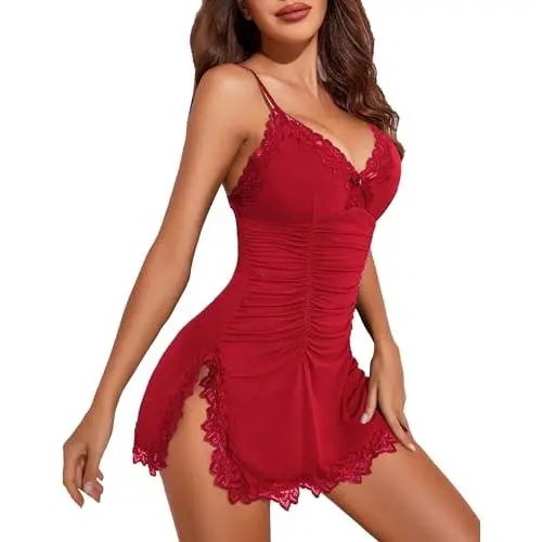 Women's Sexy Soft Ruched Babydoll Lingerie Nightgown - Comfortable Sleepwear Loungewear for Women, Elegant and Alluring Design Perfect for Special Occasions or Relaxing at Home, Lightweight and Breathable Fabric