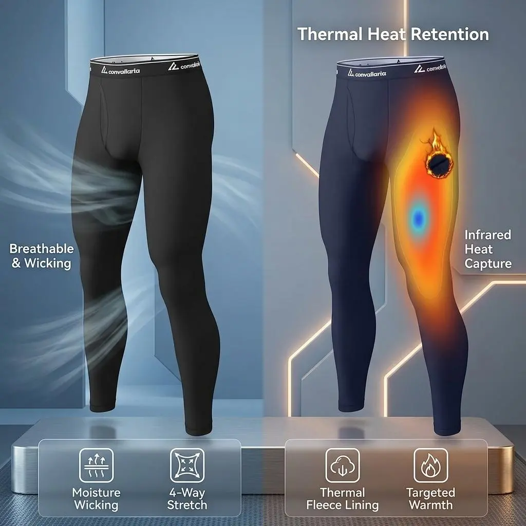 Men's Thermal Fleece Lined Compression Pants - Long Johns Athletic Base Layer for Cold Weather Gear, Warm Winter Thermal Underwear, Moisture Wicking Stretch Fit Perfect for Outdoor Sports Hiking Skiing Snowboarding