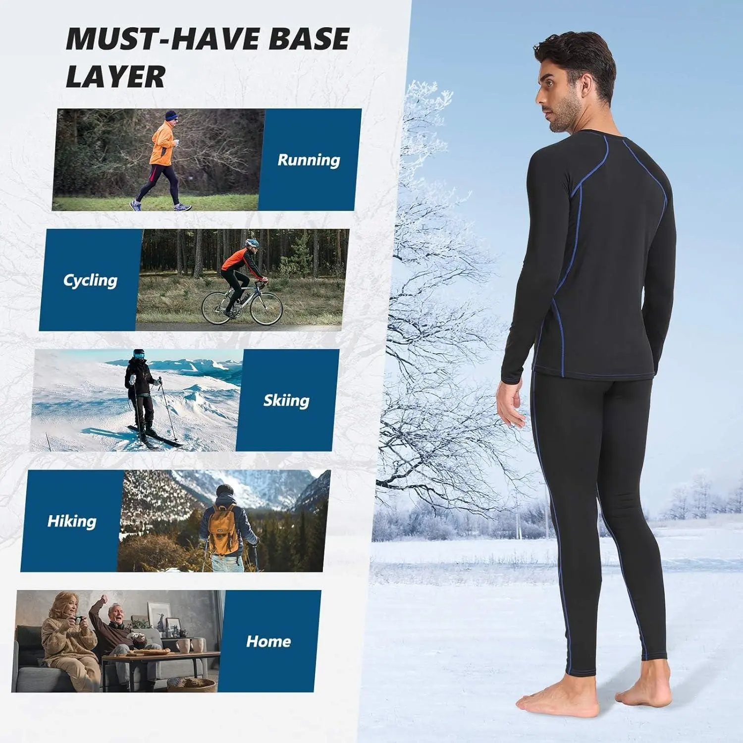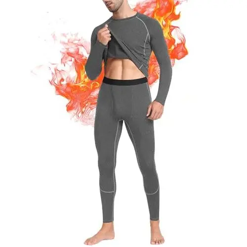 Men's Thermal Underwear Set - Fleece Lined Long Johns Base Layer for Workout Skiing Running Hiking Cold Weather Navy Blue Comfortable Warm Winter Thermal Wear Moisture Wicking Breathable Stretch Fit Activewear