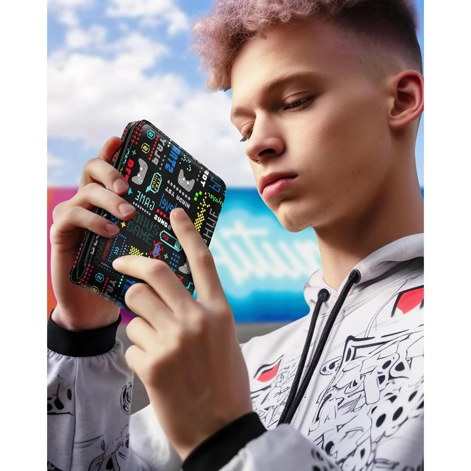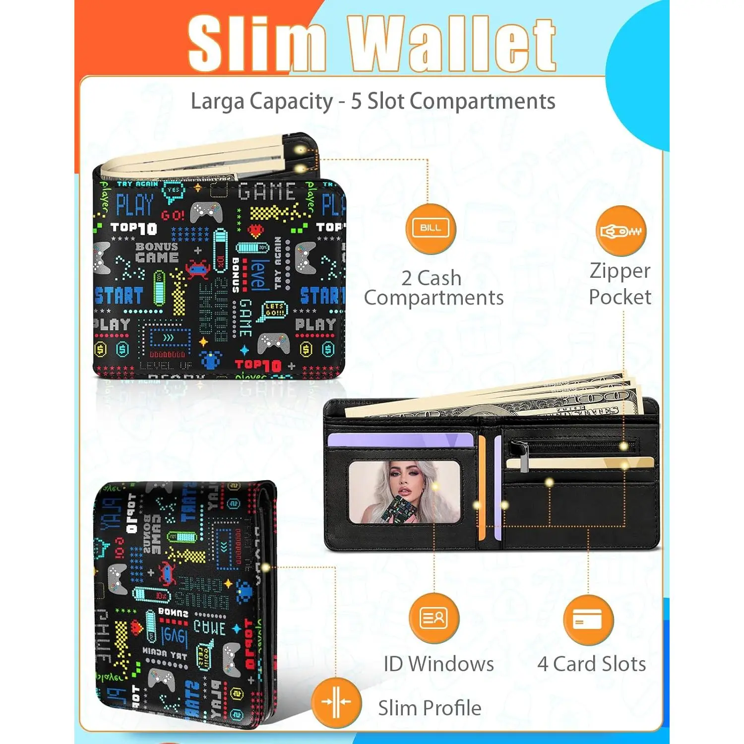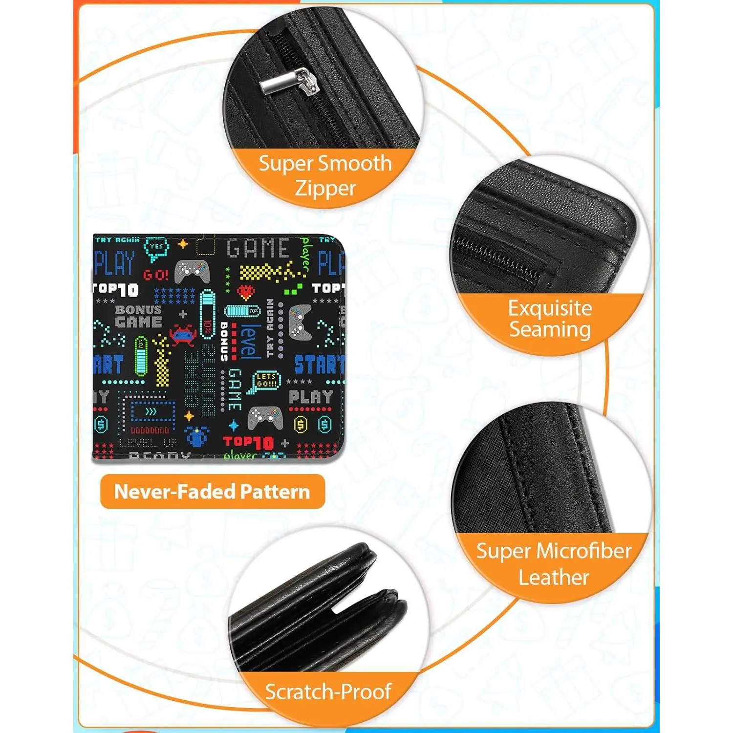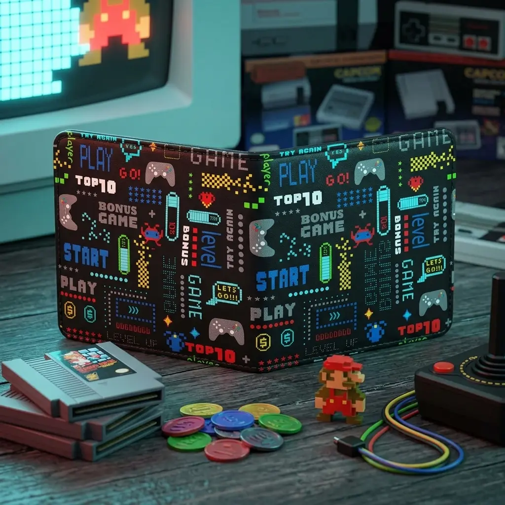 Boys' Cute Leather Bifold Wallet with RFID Blocking - Video Game Themed Slim Credit Card Cash ID Holder with Coin Pocket, Cool Fun Design for Teens Youth Little Boys, Perfect Gift