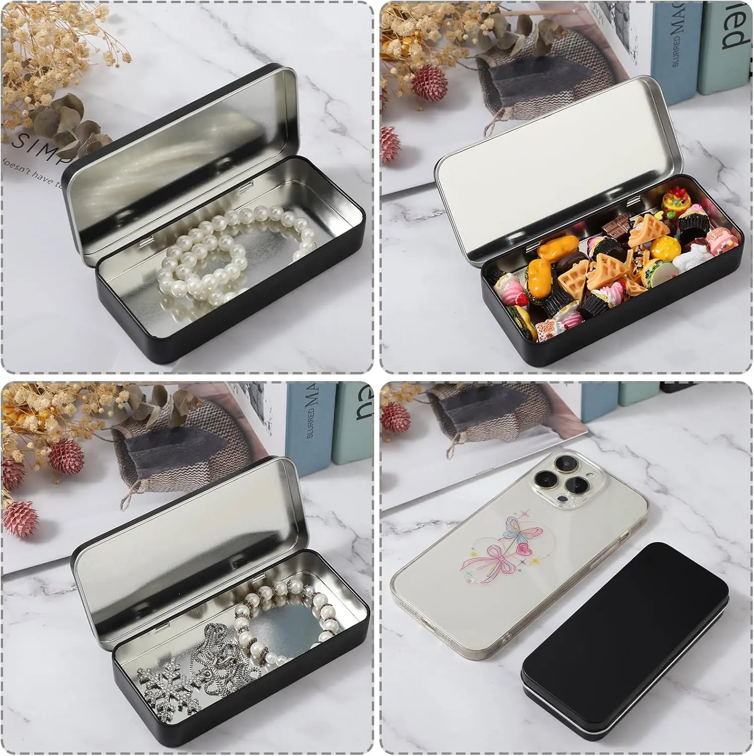 ·Multi-purpose Storage Container: Metal box with lid perfect for storing small items such as lip balm, jewellery, coins, USB flash drive, mints, candy, nail art and more