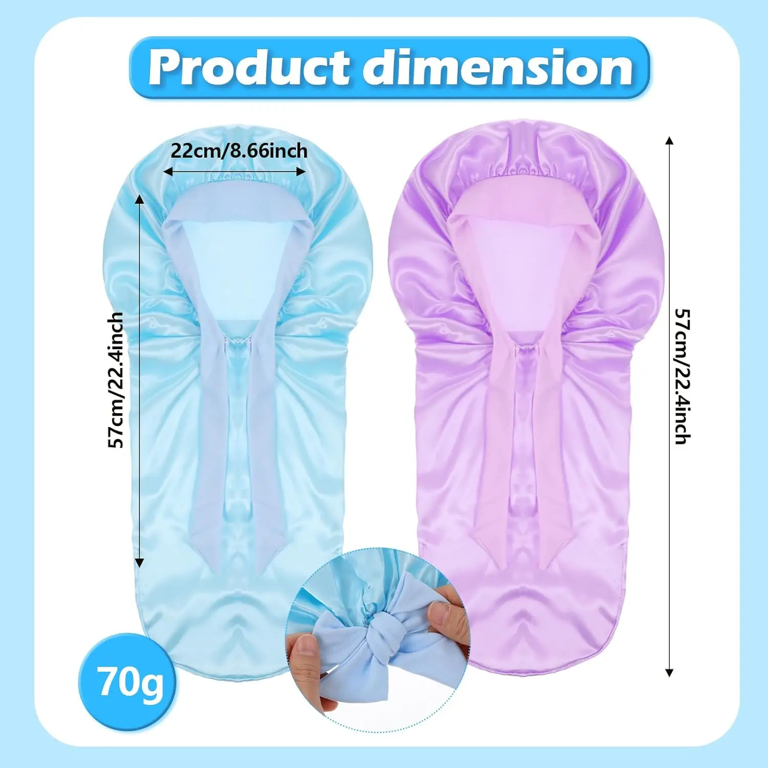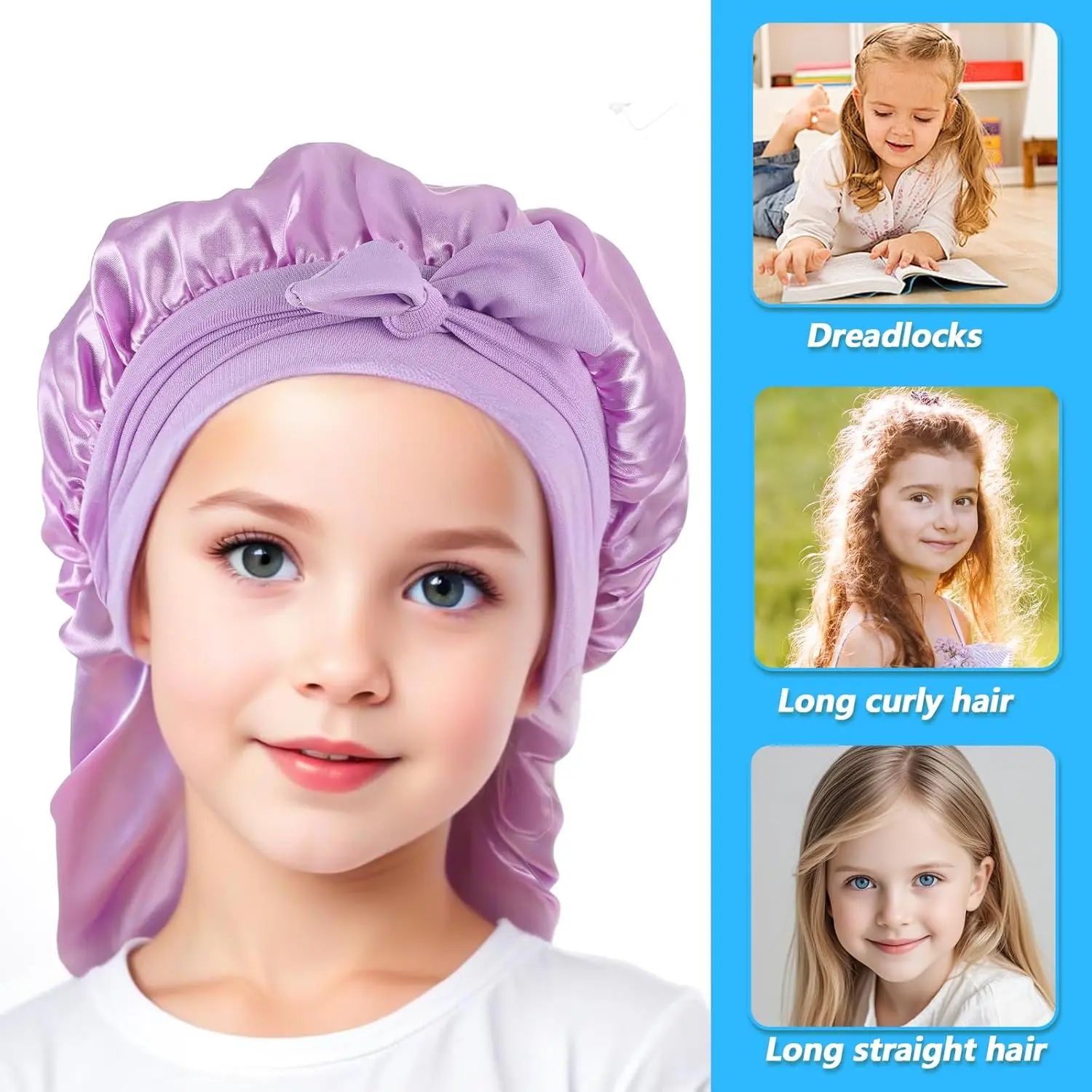 ·【Fits All Hairstyles】It's designed in long shape to meet for long hair,long braids,locs,long curly hair,etc.The length of long bonnet for kids is about 22.4 inches.The width can meet for both adult and kids's head size.