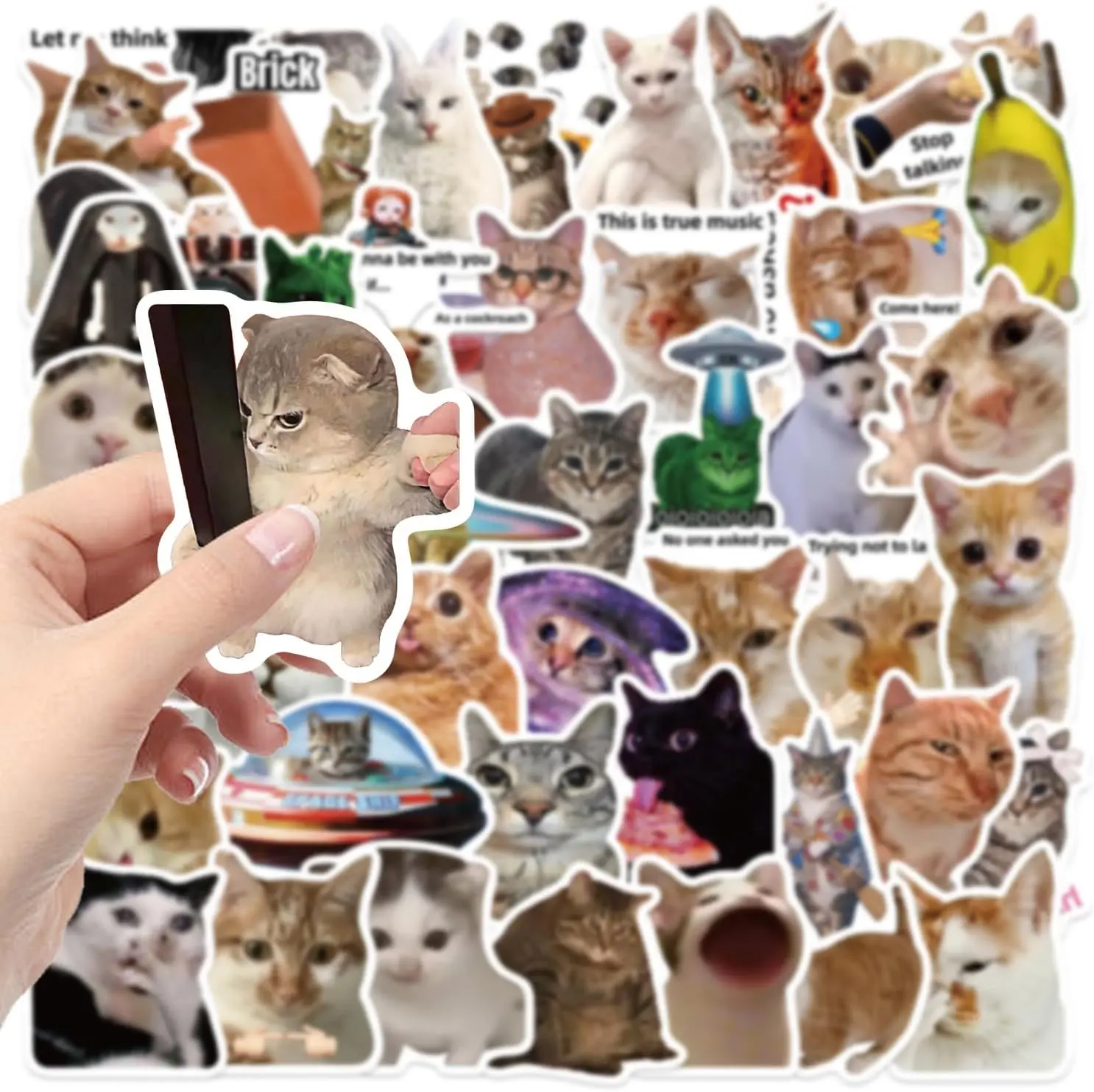 Bring personality and humor to your belongings with our 50PCS Cat Meme Stickers! Designed for sticker lovers! Product Features: Unique Selection: No duplicates, ensuring a fun variety of cat meme designs. Durable & Weatherproof: Waterproof, UV-resistant, and fade-proof for long-lasting use. Easy to Apply: Simply clean the surface, stick it on, and let your creativity shine! Specifications: Material: Premium PVC Size: 2 - 3.5 inches Color: As shown in the pictures Perfect for: Gifting & Events: Great for party favors, student rewards, birthdays, holidays, and personalized presents. Decorating Anything: Use them on water bottles, laptops, phones, skateboards, luggage, helmets, notebooks, diaries, bikes, cars, and more! Note: Stickers adhere best to smooth, clean surfaces. Not recommended for rough, soft, or leather surfaces. Satisfaction Guaranteed.