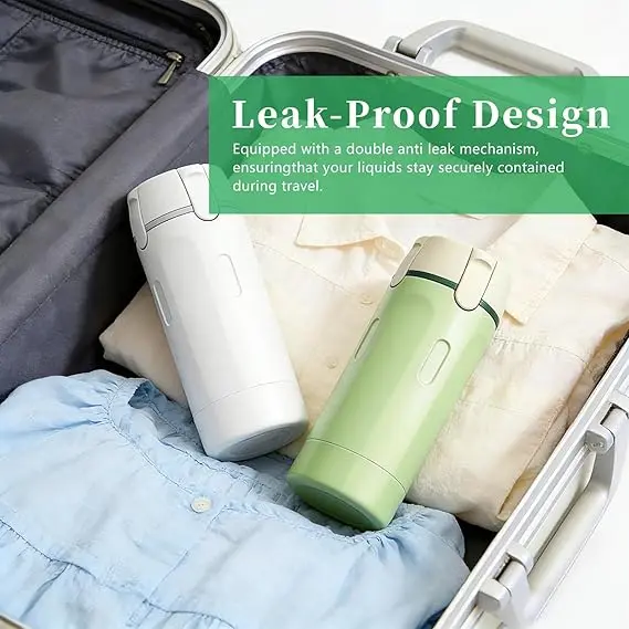The foldable pump design helps prevent accidental pressing during travel, while the secure outer cap adds extra protection against leaks inside luggage, handbags, backpacks, or gym bags. Its slim lightweight body easily fits into carry-on luggage, making it perfect for flights, business trips, camping, vacations, and everyday travel.