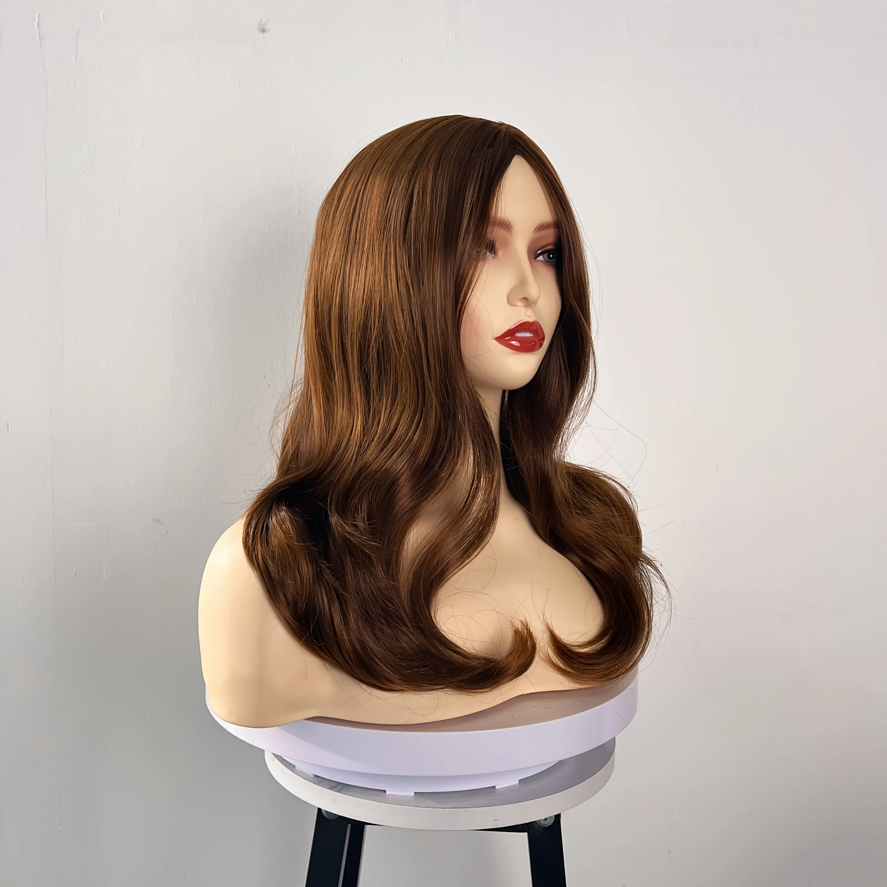 [Elegant Hair] Highlight Brown Layered Wig Straight Wear and Go Synthetic Wig High Quality Glueless Wigs for Women Heat Resistant Fiber Daily Use Women's Day
