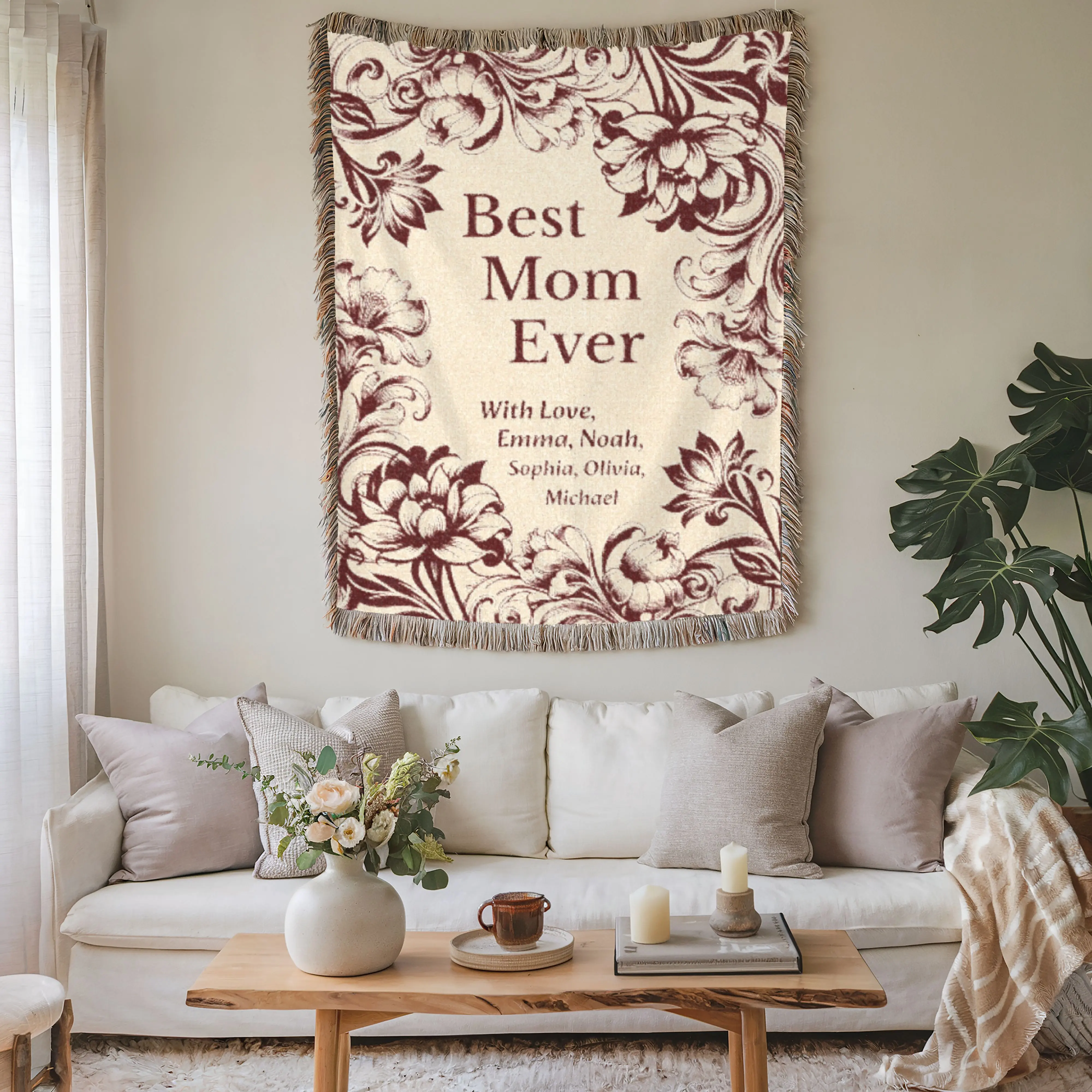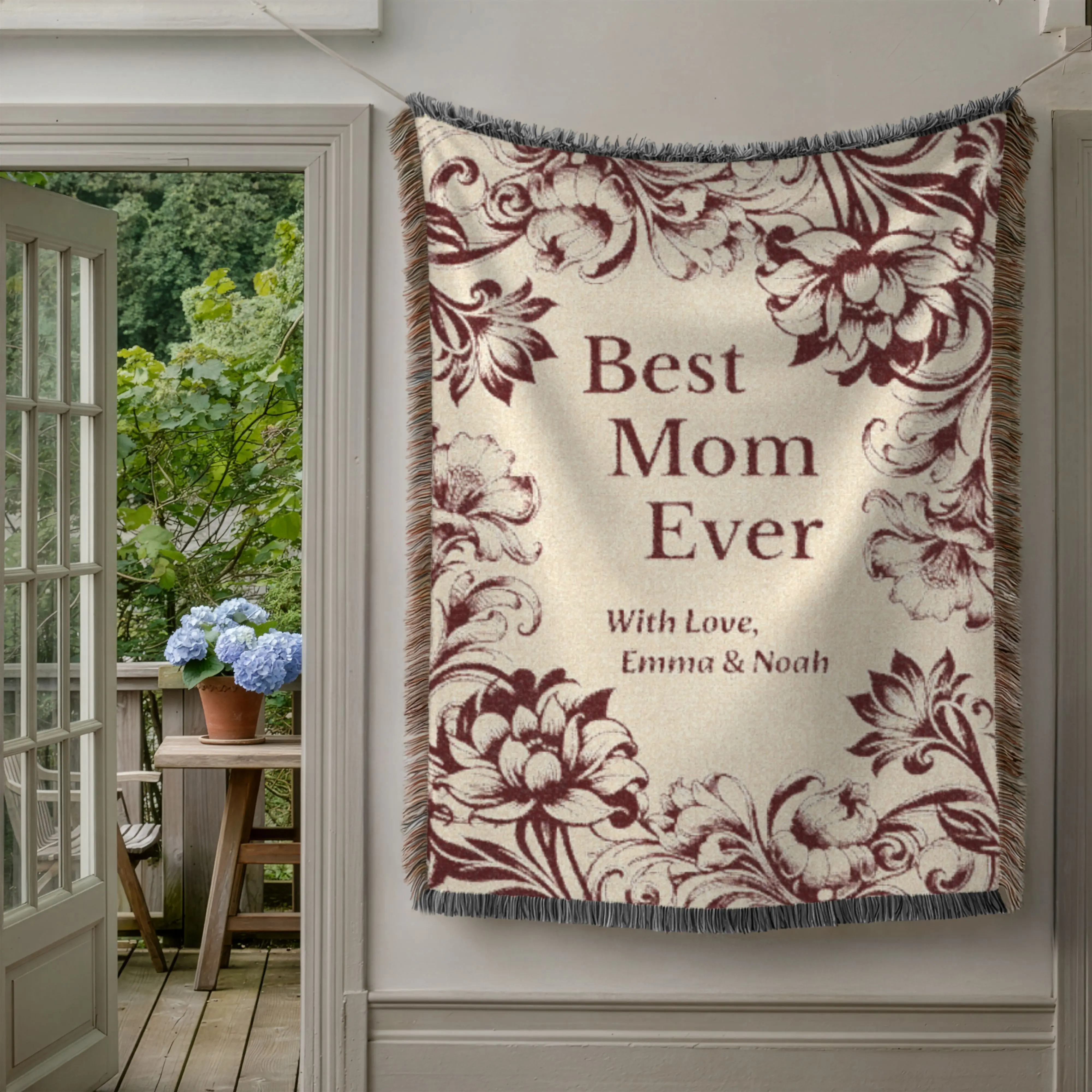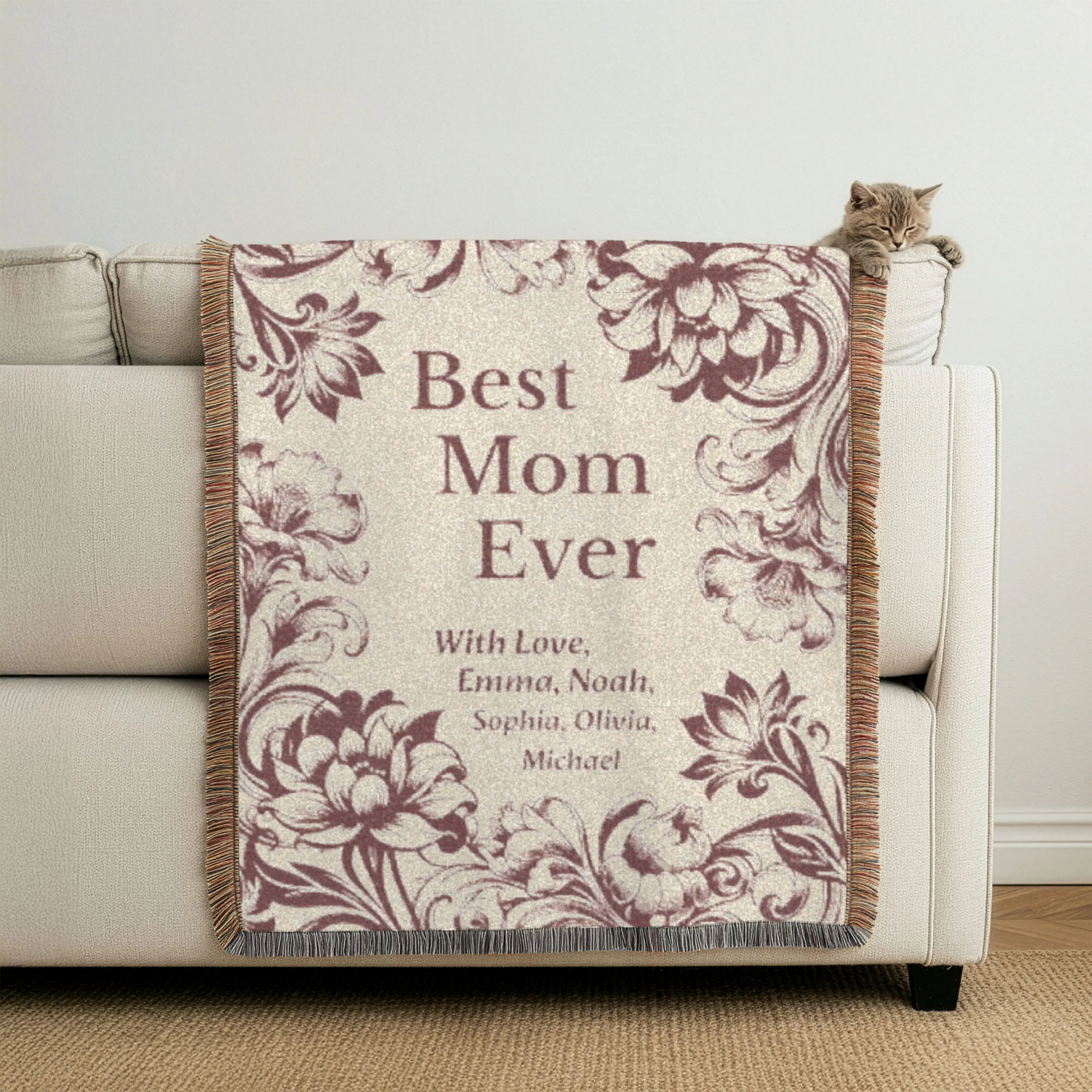Wrap your mom in love with this beautifully designed Best Mom Ever woven blanket. Featuring an elegant vintage floral pattern and meaningful message, this cozy throw is perfect for gifting or adding a stylish touch to any home. Ideal for everyday comfort and special occasions alike.