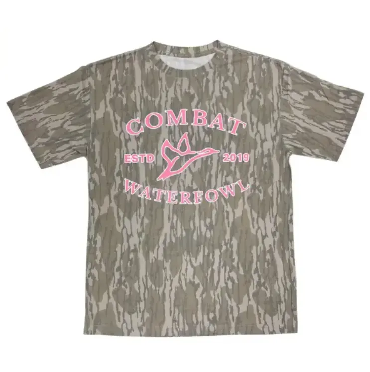 Pink Combat Waterfowl Mossy Oak Washed Out Camo Tee Mossy Oak Camo, Original Bottomland Short Sleeve Camo Shirt, Hunting Shirt, 3D T-shirt