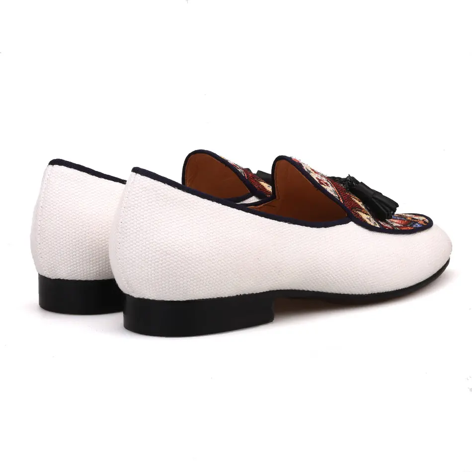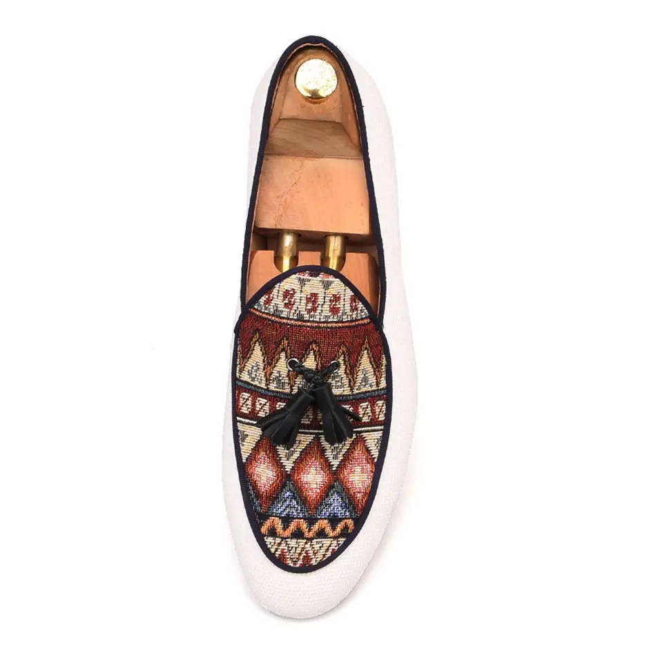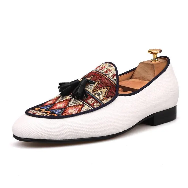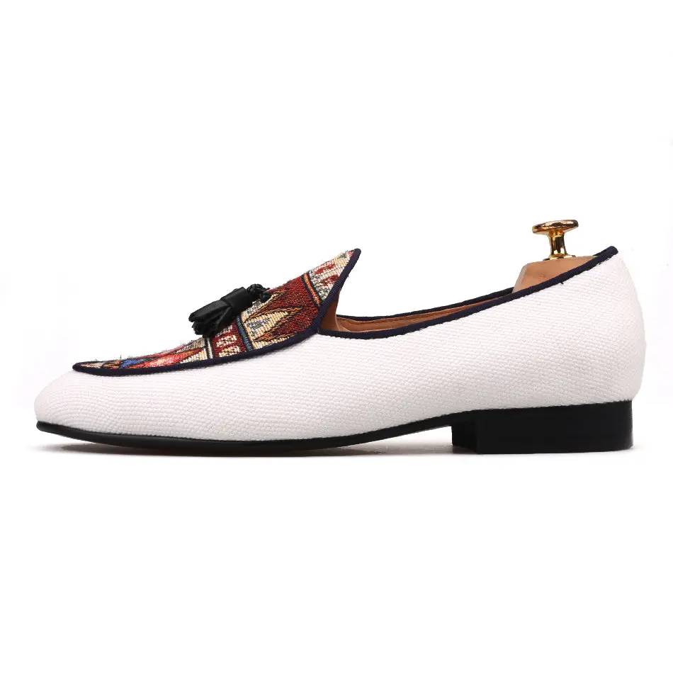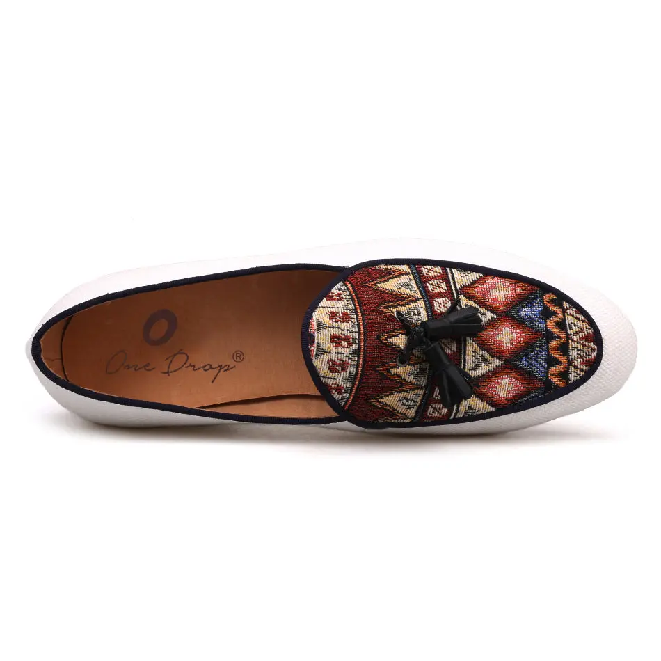 OneDrop Men Handmade Dress Shoes Cotton Canvas Of Paisley Pattern Party Wedding Prom Loafers