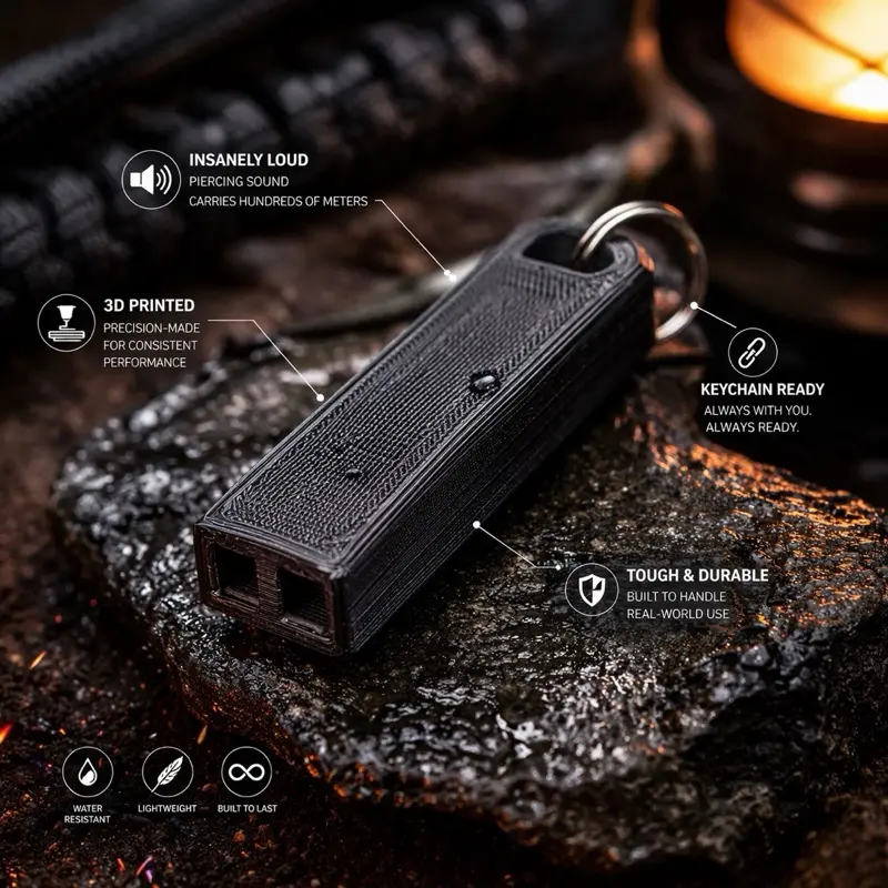 3D Printed Whistle - Extremely Loud Tough & Durable Keychain Ready Outdoor Gear