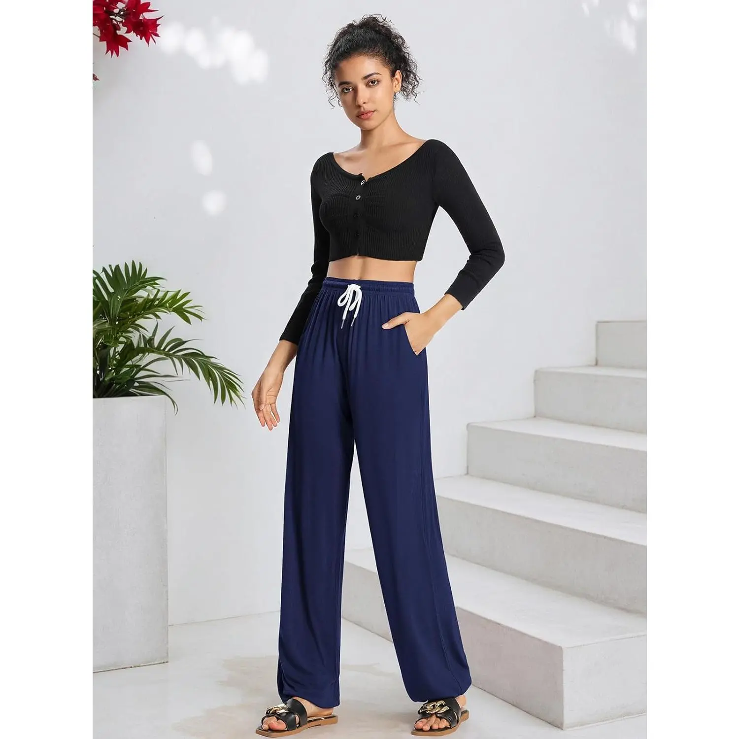YeoKou Women Drawstring Striped Pants Loose Wide Leg Lounge Pants Casual Palazzo Pants Trousers with Pockets Bottom Oversize
