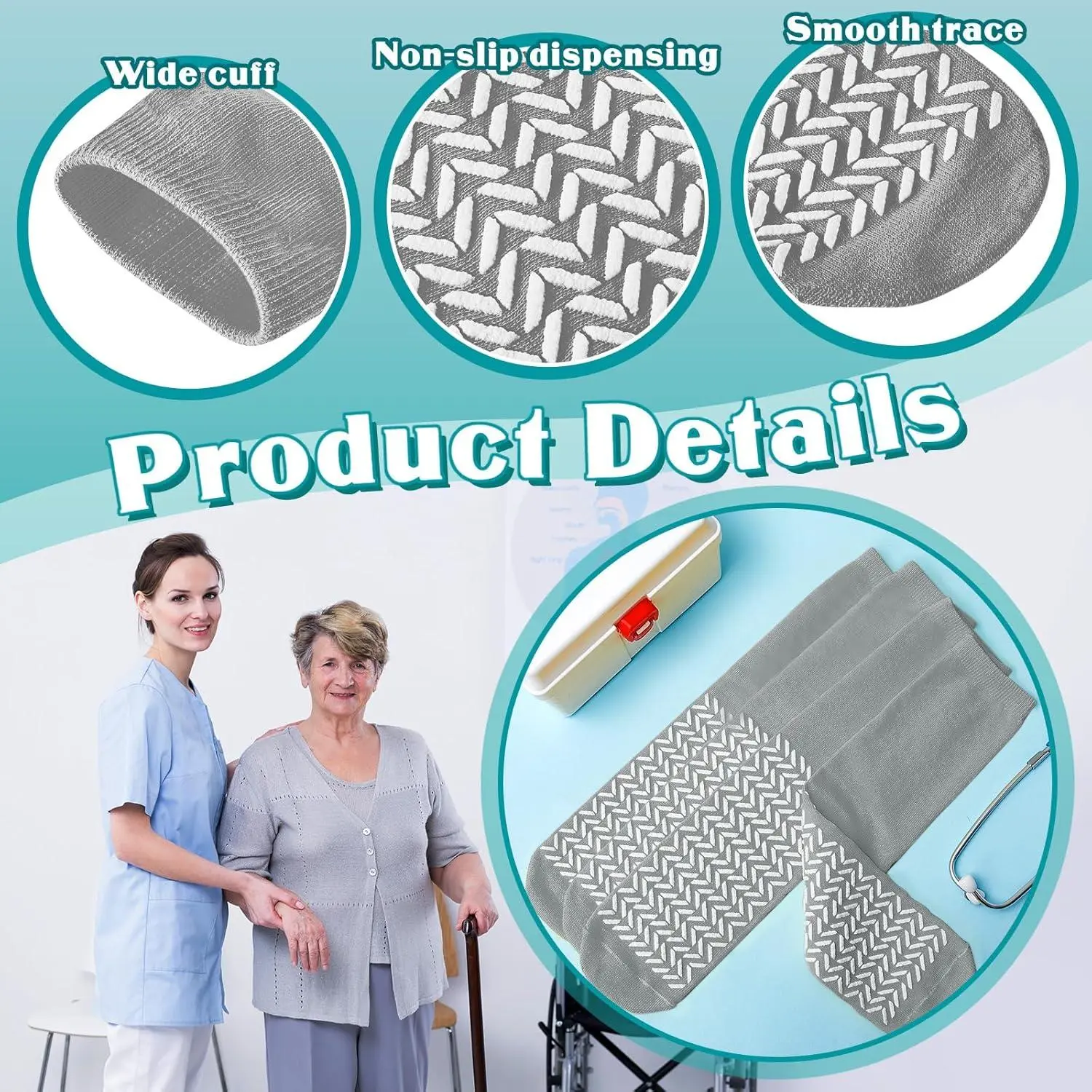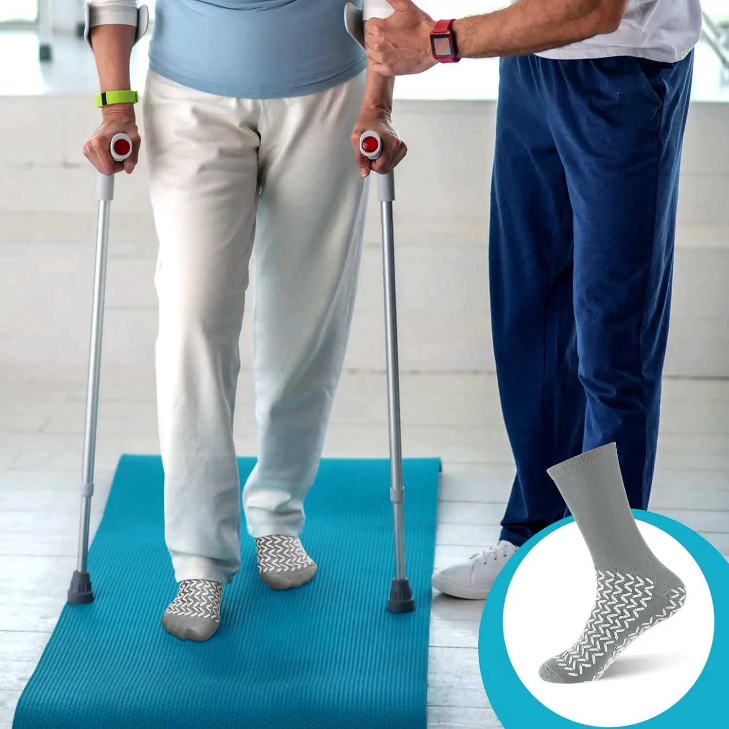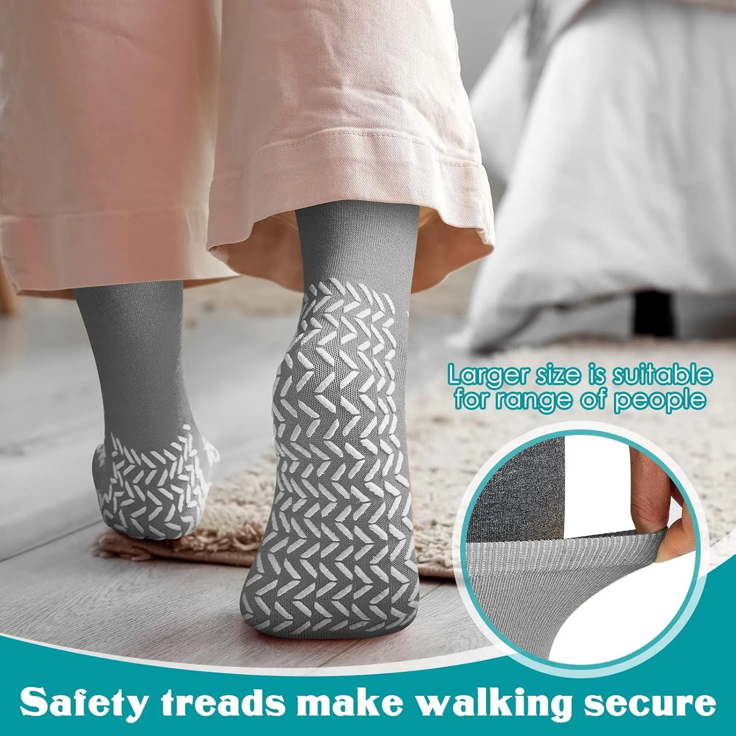 Double Sided Non-Slip Safety Socks with Grippy Tread - Anti-Slip Fall Prevention Soft Comfortable Socks for Women, Men, Bariatric, Elderly, Yoga, Pilates, Hospital, Home Use, Perfect for Indoor Activities and Daily Wear