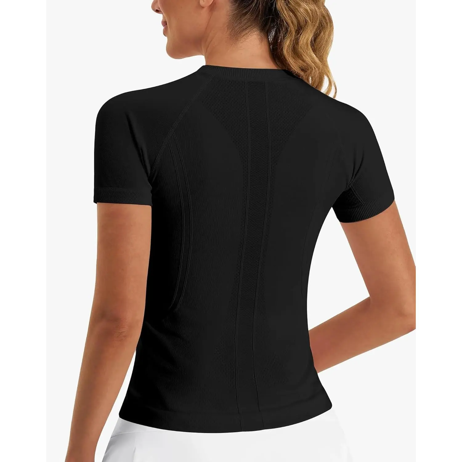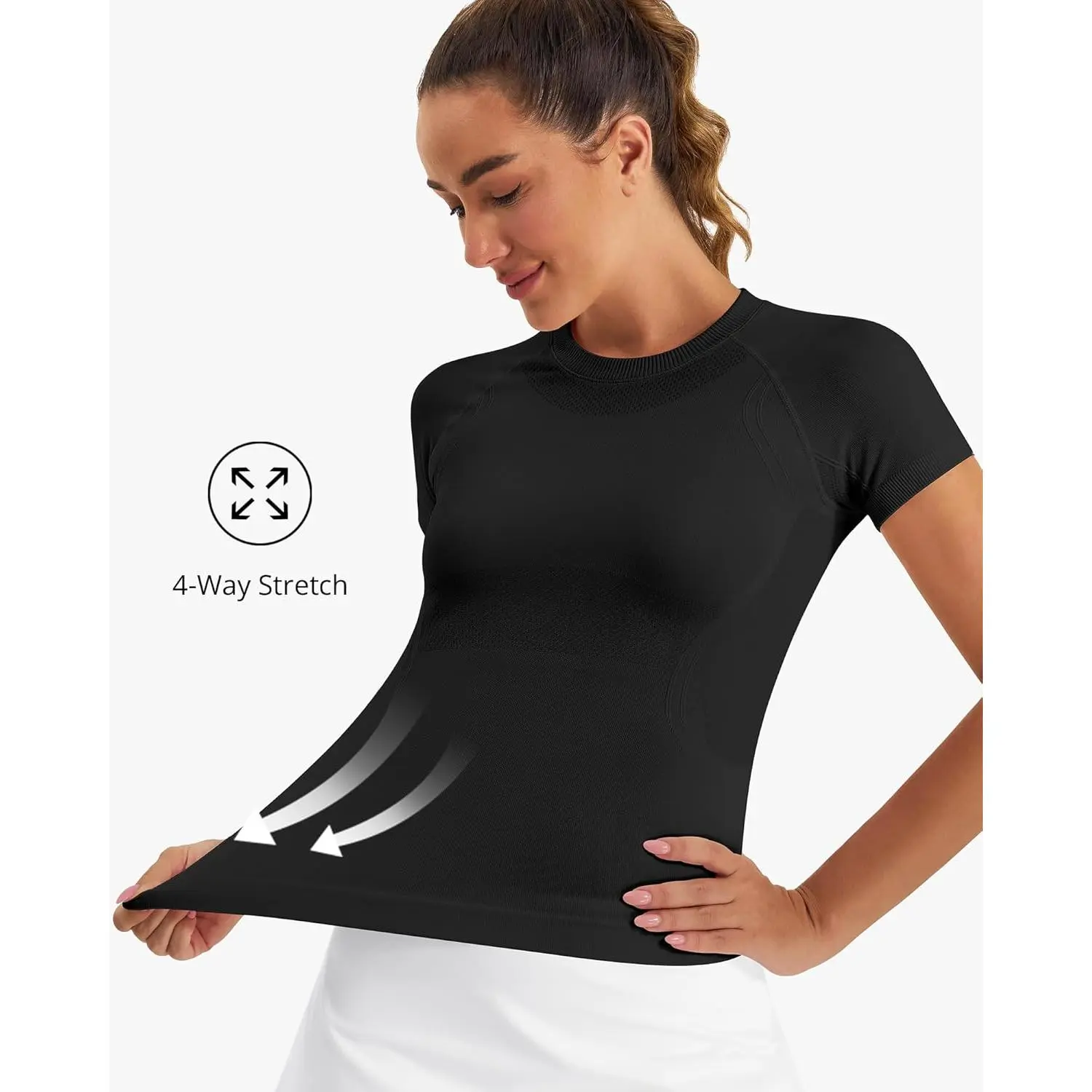 Women's Seamless Workout Tops Short Sleeve Athletic Shirts - Breathable Yoga Gym Sports Tees for Fitness Training Running Comfortable Stretchy Activewear Tank Tops Casual Wear Lightweight Quick Dry Fabric