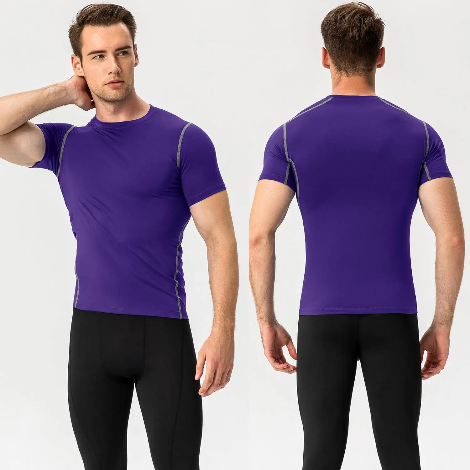 Men's Compression Shirts Short Sleeve Athletic Workout T-Shirt - 1 or 2 Pack Cool Dry Active Gym Undershirt Running Tops Moisture Wicking Breathable Performance Fabric for Sports Fitness Training