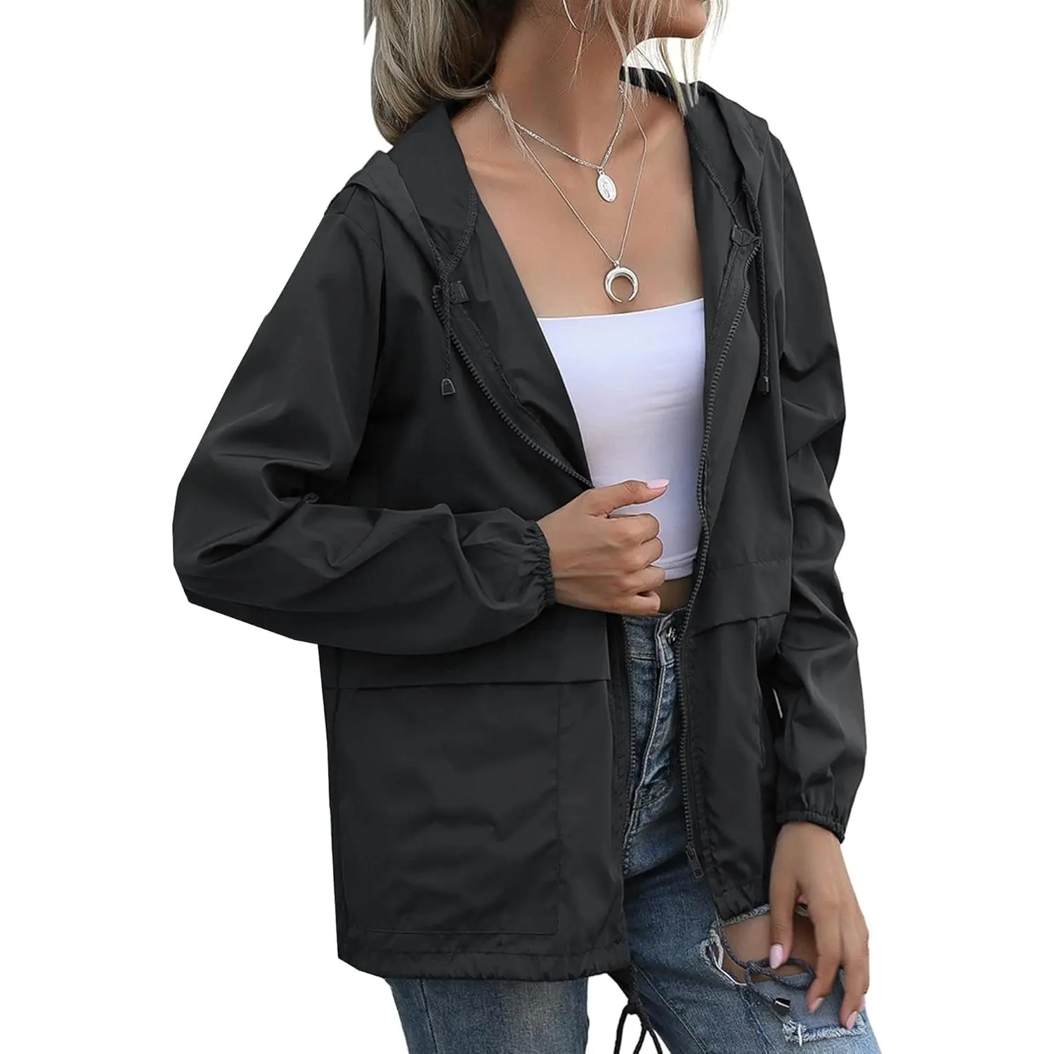 Women's Lightweight Waterproof Windproof Raincoat - Adjustable Hooded Windbreaker Rain Jacket with Pockets, Breathable Comfortable Outdoor Wear for Rainy Days, Sizes S-XXL