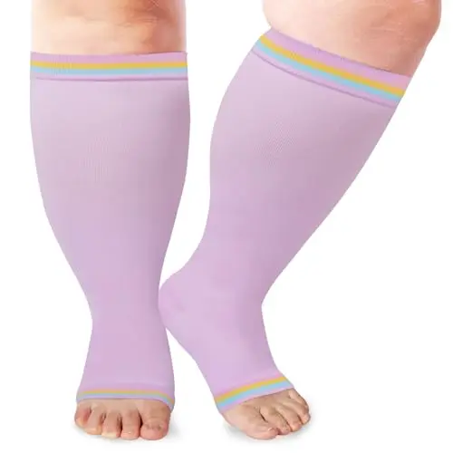 Open Toe Plus Size Compression Socks for Women & Men 15-20 mmHg Toeless Wide Calf Support Knee High Socks - Medical Grade Graduated Compression for Edema Varicose Veins Circulation Relief Comfortable Breathable Stockings