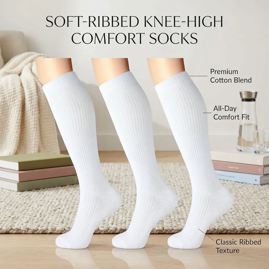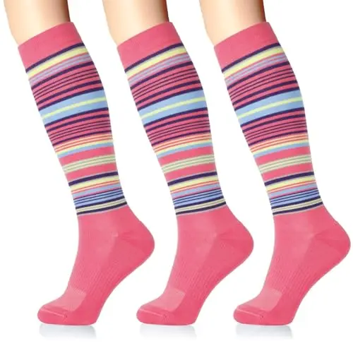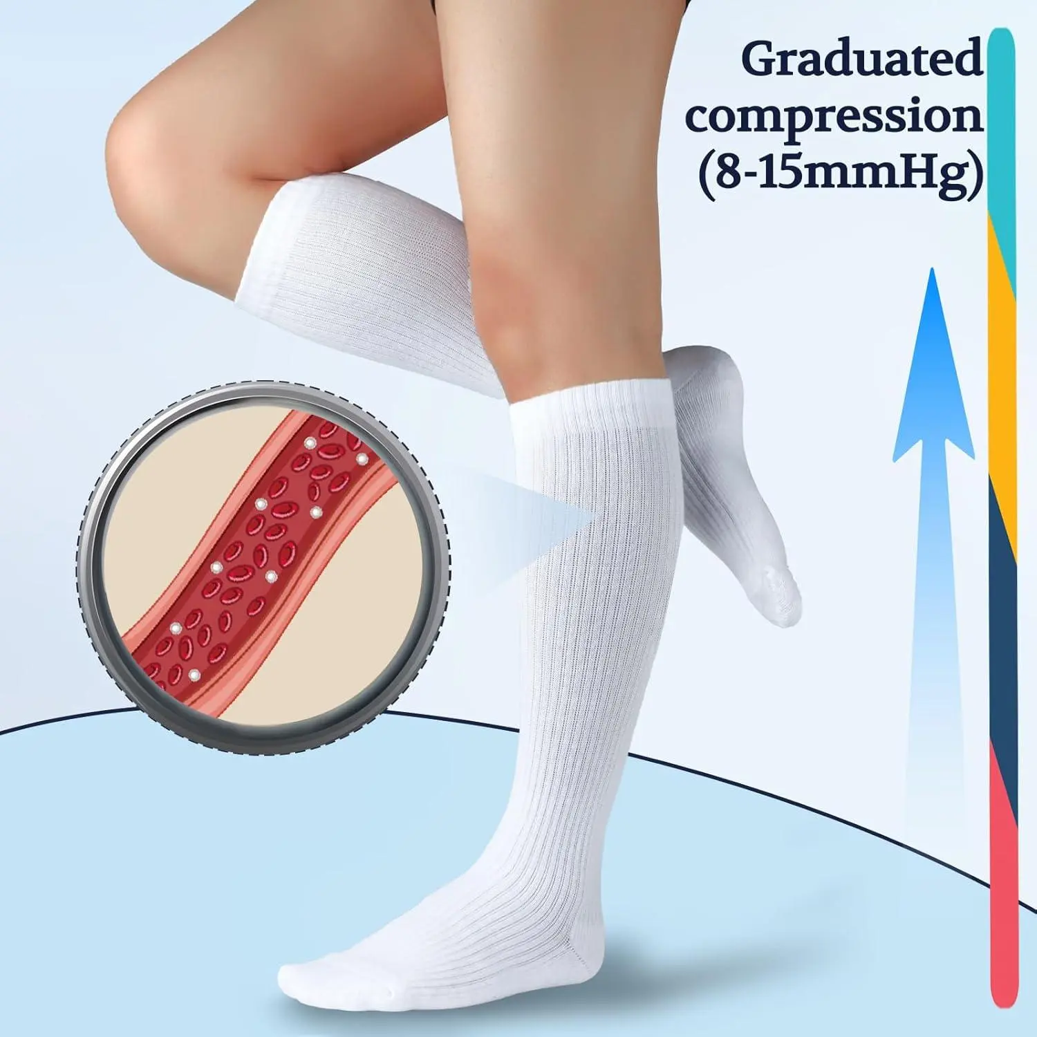 Compression Socks for Women and Men - 3 Pairs 8-15 mmHg Knee High Support Socks Made of Cotton, Perfect for Travel, Sports, Running, Nursing, and Varicose Vein Relief, Breathable and Comfortable Design