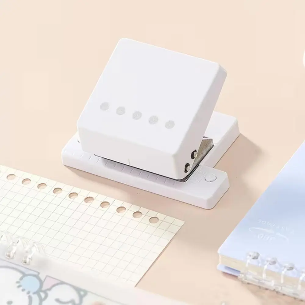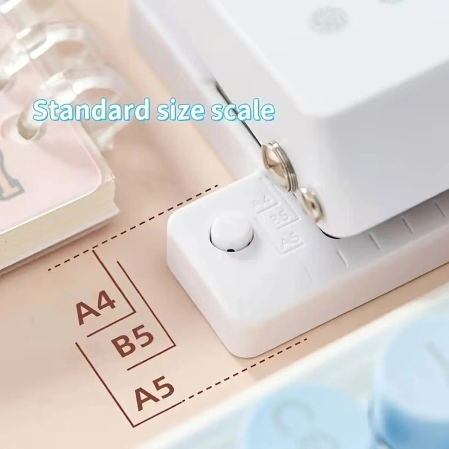 1 hole puncher with a page clip, compatible with A4, A5, B5 and various types of paper, a manual tool, used for punching holes in notebooks and office study materials.