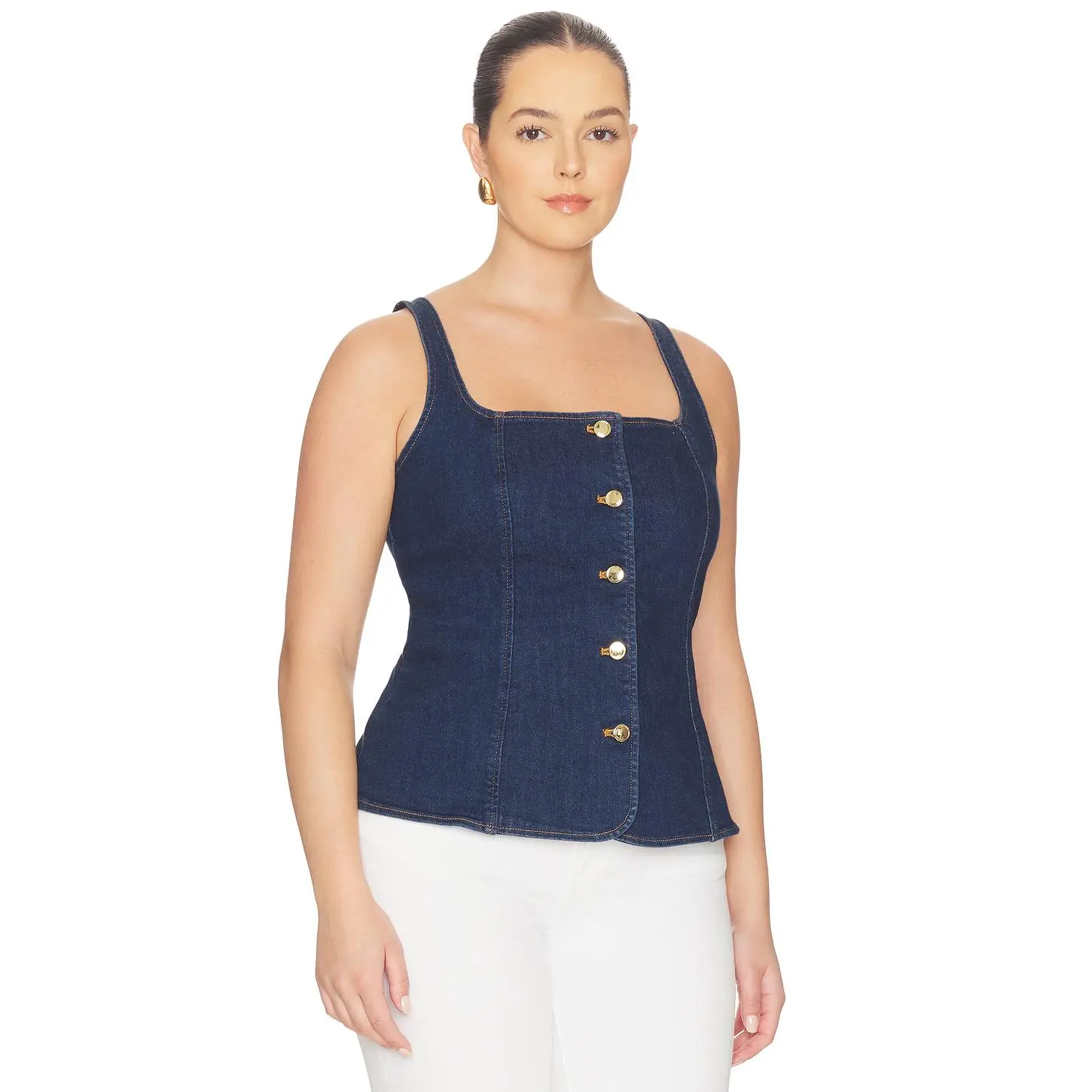 5. Good American Sleeveless Button Front Denim Top in Indigo1169