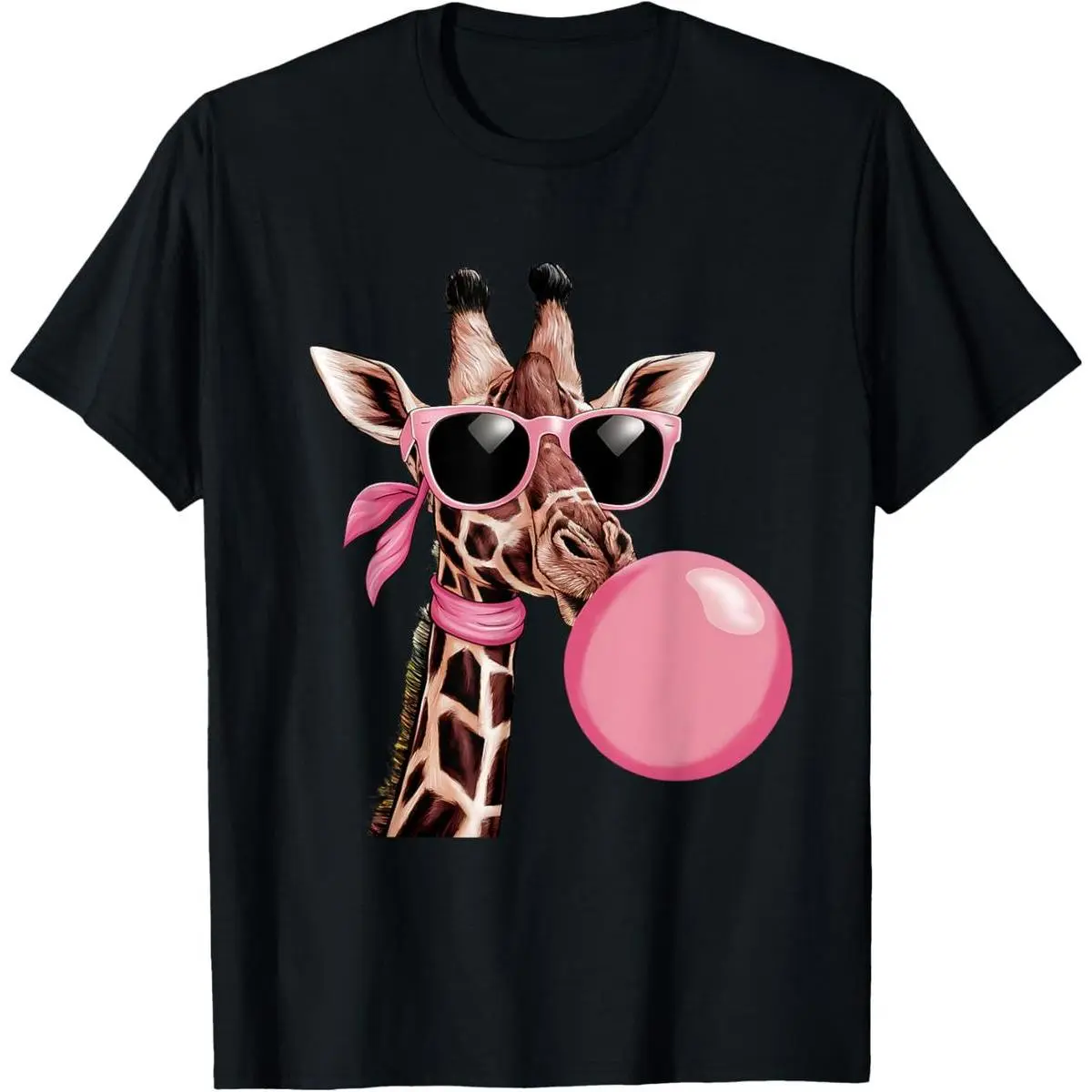 100% cotton Funny Cute Giraffe Pink Bubble Gum and Pink Sunglasses T-Shirt