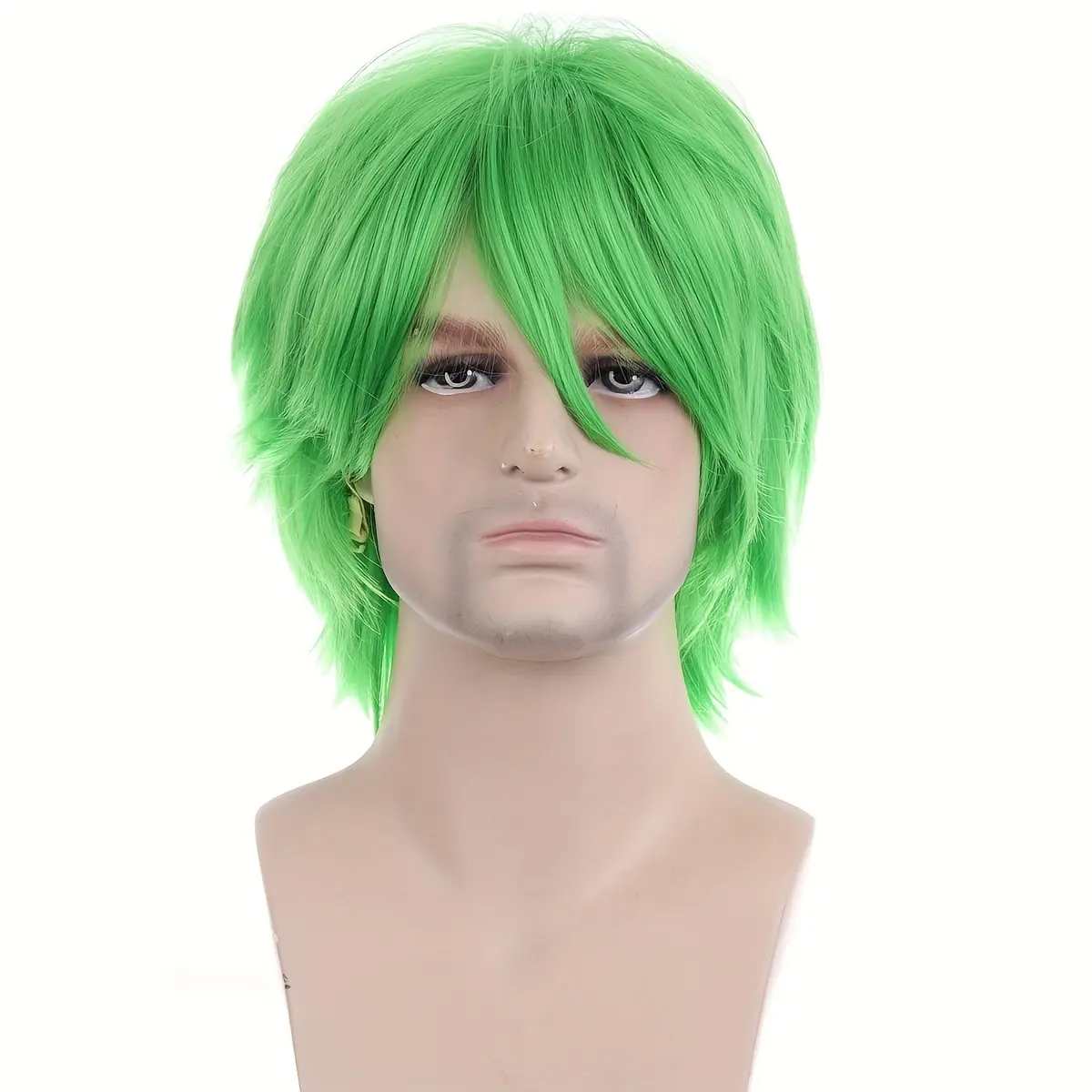 12-Inch Full Cosplay Wig Suitable for Both Men And Women, Featuring a Spiky Design in Green, Orange, Black, White, And Blue