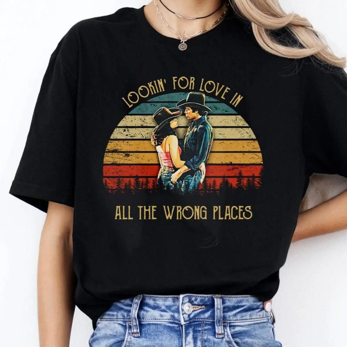 Bud And Sissy Looking For Love In All The Wrong Places Shirt, Retro 80s Country Movie Quote Tee, Vintage Romance Unisex T-Shirt, Cowboy Couple Gift