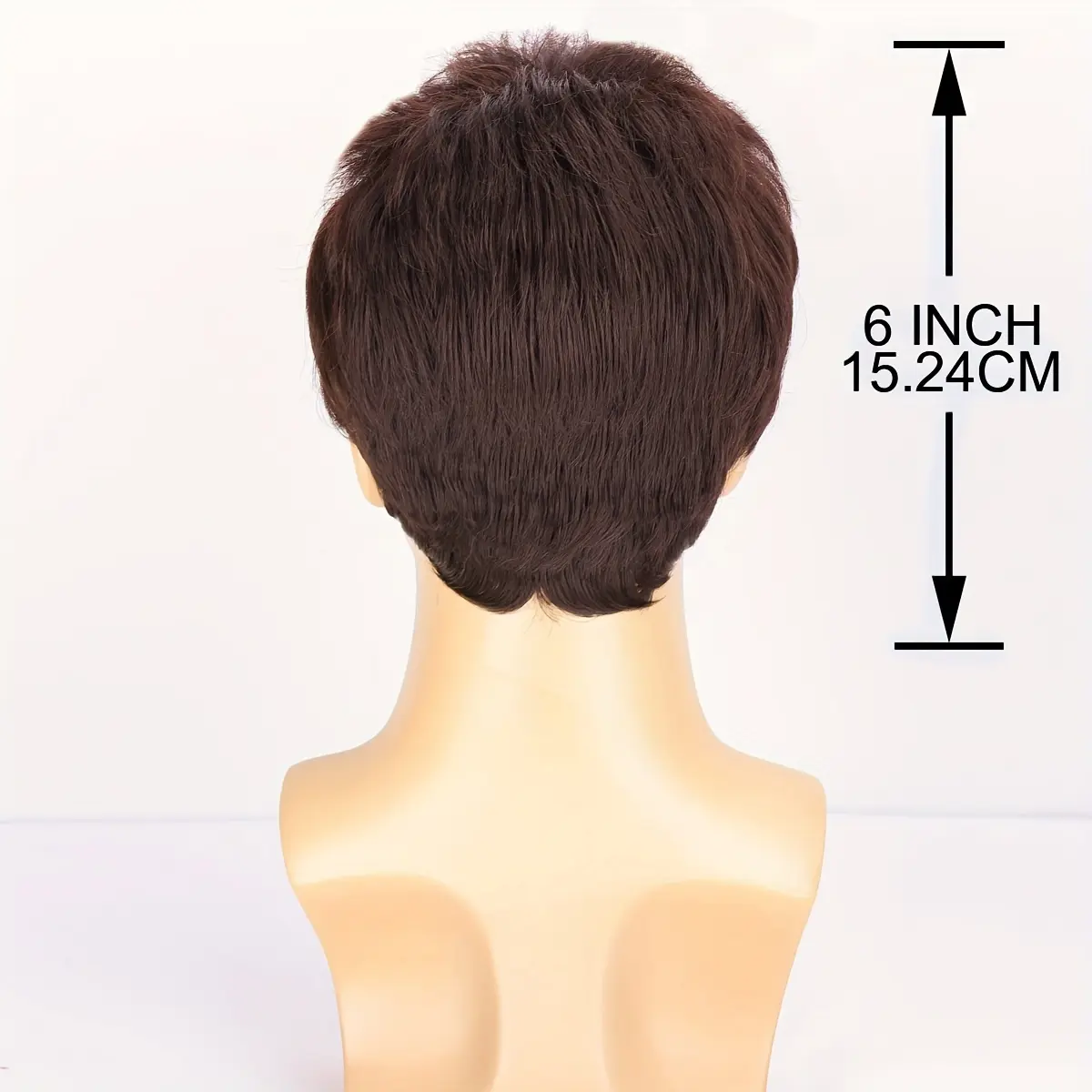ShowReal 036 Pixie Short Pixie Cut Wigs Short Straight Brazilian Human Hair Wigs With Bangs Ready To Go Natural Black Color Full Machine Made Wig 4 Inch Size
