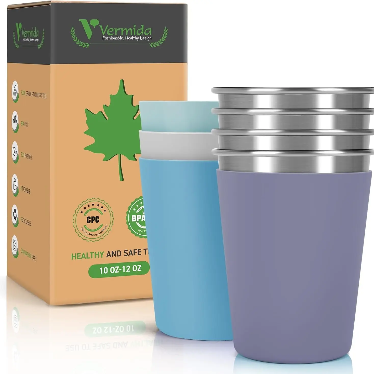 ·【Unbreakable 18/8 Stainless Steel】Compare with broken glass and cheap plastic, each metal cup is made of 18/8 stainless steel, and it can withstand multiple falls. It also has a polished outer surface, thick walls, and a sturdy base, protecting kids from hurt by sharp edges, and won't rust after a long time using. Ideal for getting your kids or partner to drink their water.