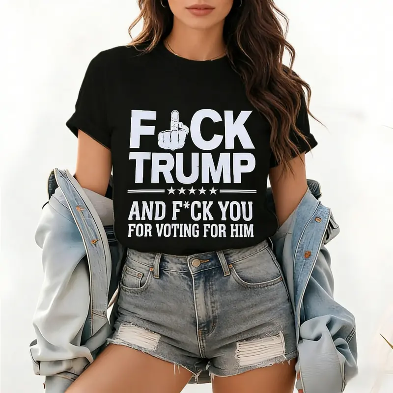 Controversial Black T - Shirt With 'Fck Trump And Fck You For Voting For Him' Message - A Strong - Statement Garment For Political Expression