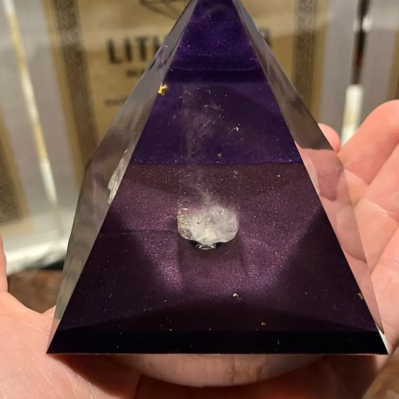 This premium energy set features a centerpiece 4-inch lighted orgonite pyramid, precision-crafted to illuminate the natural beauty of the embedded crystals. Accompanied by two smaller, clear-quartz style companion pyramids, this trio is designed to create a balanced energy grid for your home or workspace."