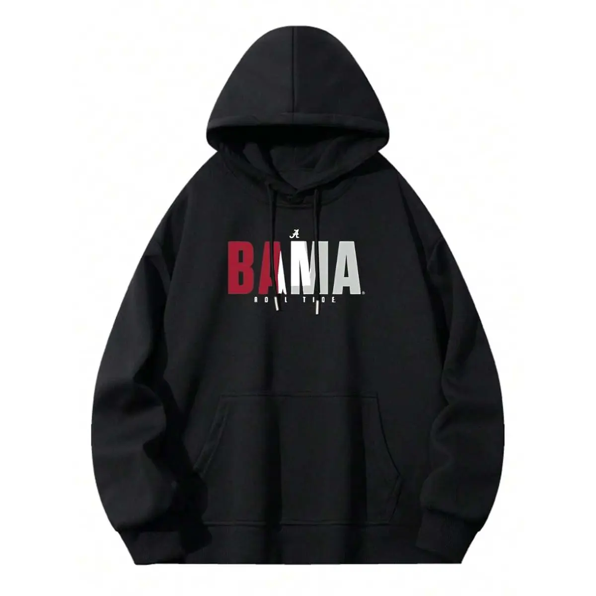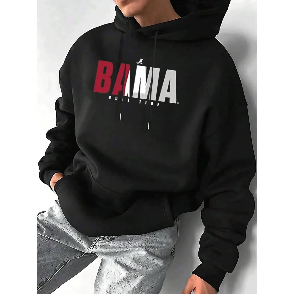 Bold BAMA Roll Graphic Print Men's Pullover Hoodie, Stylish And Comfortable Casual Sweatshirt With Drawstring Hood, Perfect For Everyday Wear Or Relaxing At Home, Keep Warm In Style