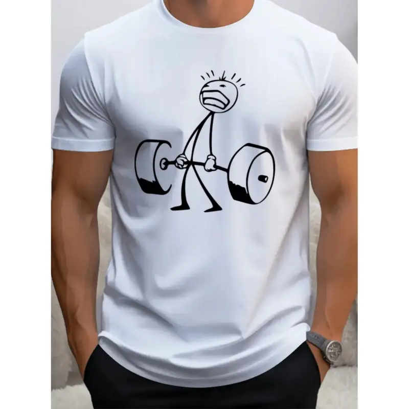 Weightlifting Graphic T Shirt For Men Breathable Crew Neck Short Sleeve Gym Tee With Dumbbell Design Durable Fabric Summer Leisurewear Mixed Color T-Shirt For Men And Women