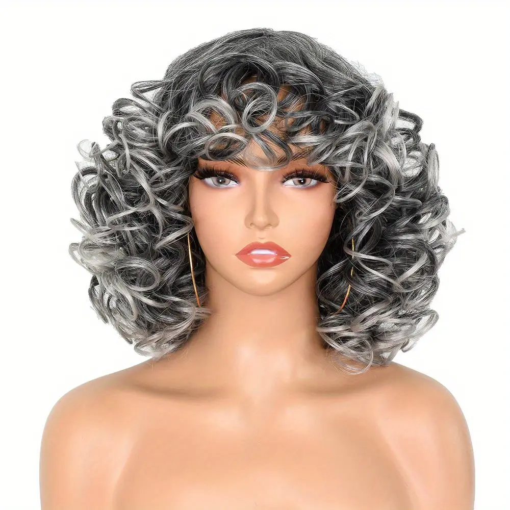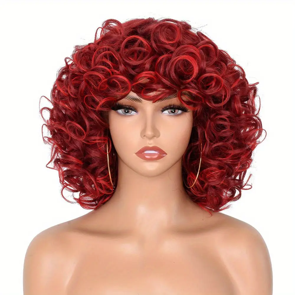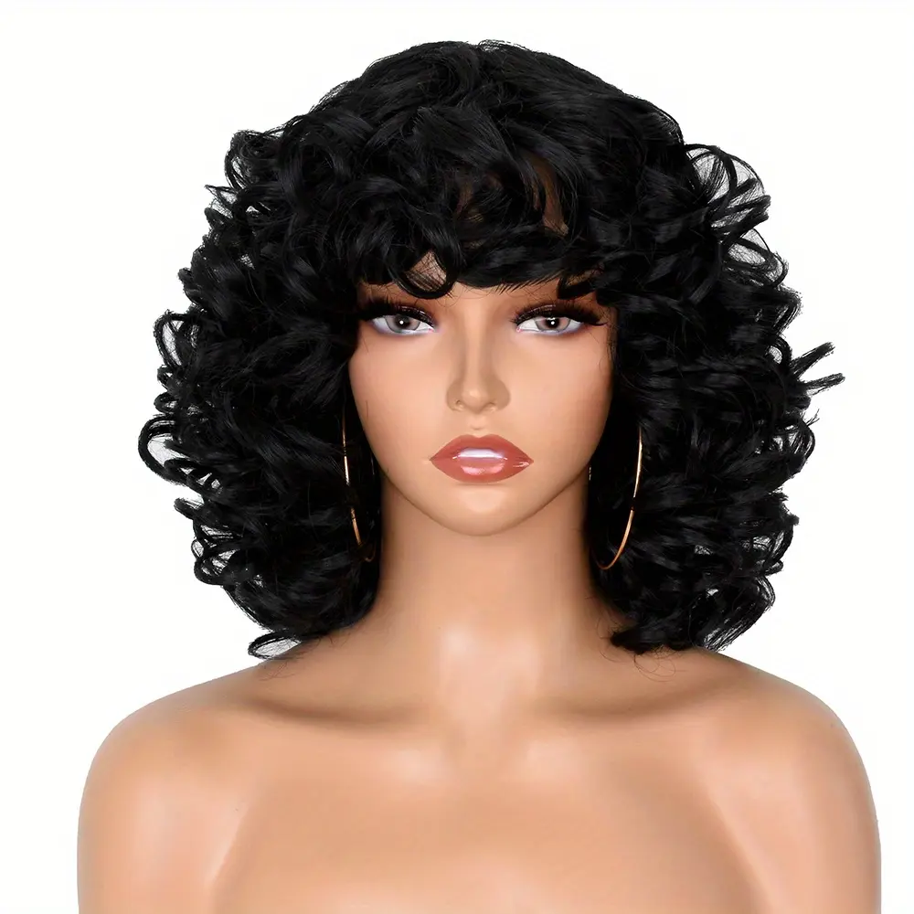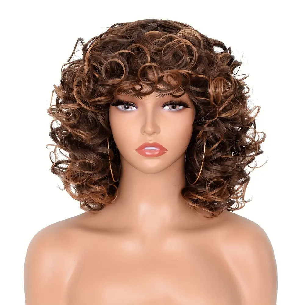 Synthetic Loose Big Curly Wigs - With Bangs For Women - Bouncy Curly Wigs - Short Afro Curly Wigs - For Daily Party Cosplay Halloween Use