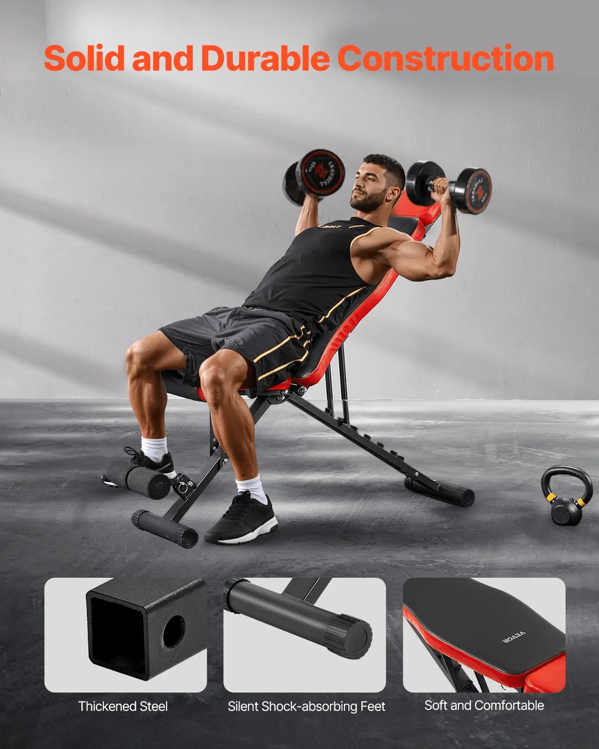 Crafted from high-quality materials, the VEVOR adjustable weight bench is built to last. The compact design makes it easy to store when not in use, perfect for those with limited space. The bench is also easy to assemble, allowing you to start your workout routine without any hassle.
