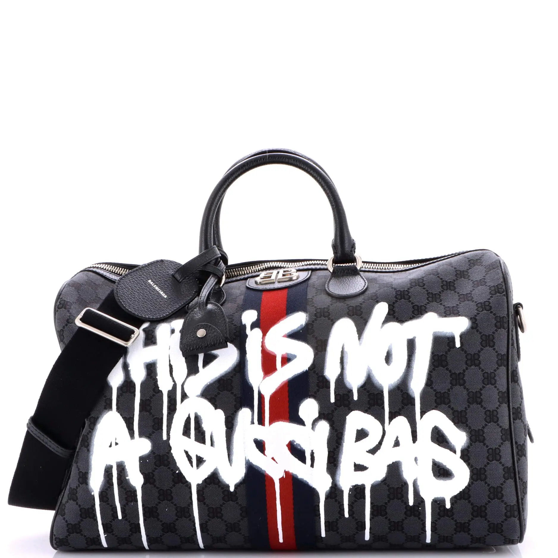 Pre-owned Balenciaga Canvas Plain Travel Bags x Gucci The Hacker Project Duffle Bag Graffiti BB Canvas Medium by Rebag
