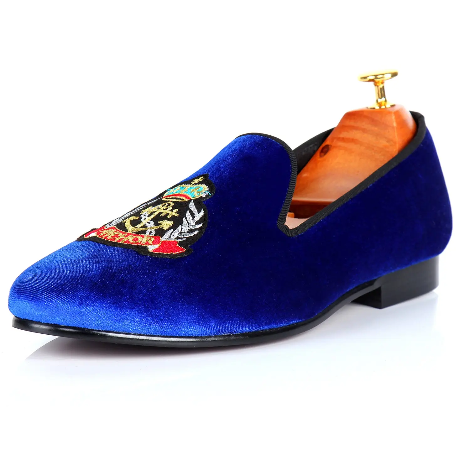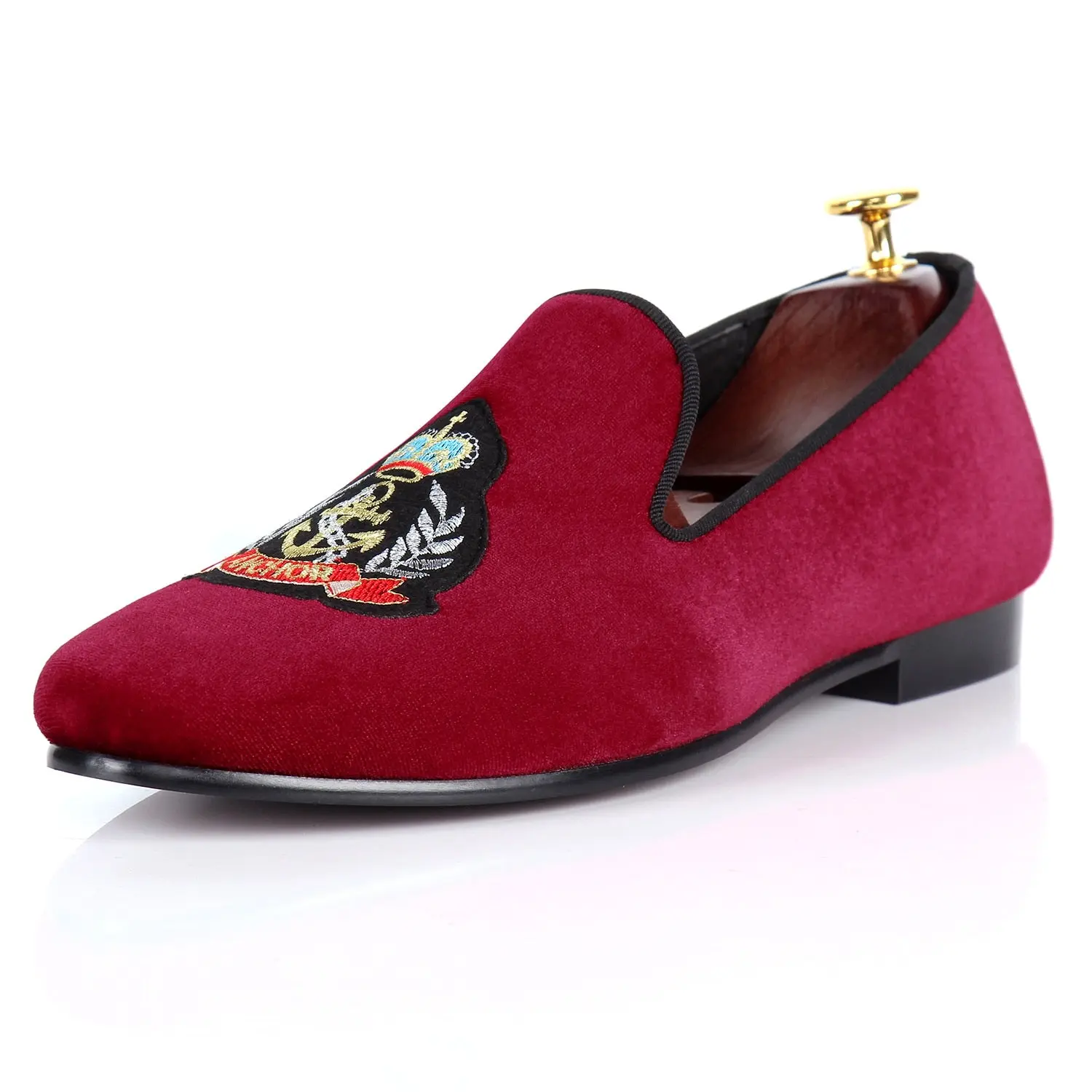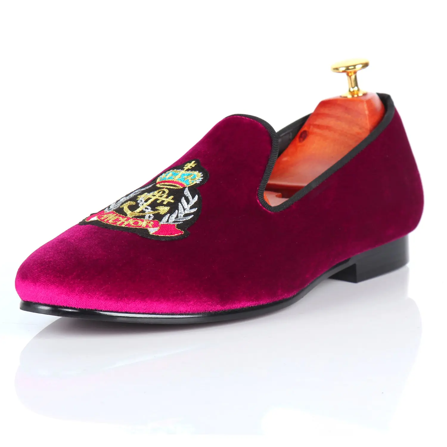 Harpelunde Men Handmade Dress Shoes Slip On Wedding Embroidery Velvet Loafers