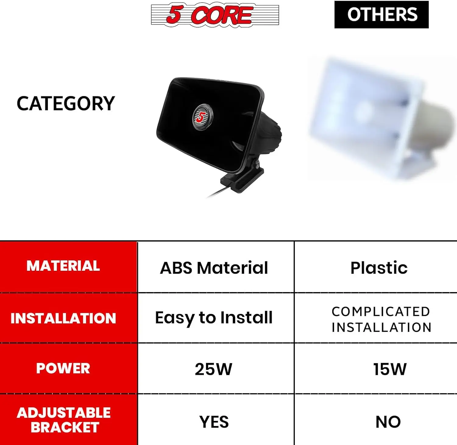 ·【Adjustable Horn Angle】Features a 180-degree built-in adjustable mounting bracket for accurate sound direction. The horn speaker mounting system allows flexible positioning for trucks, walls, or outdoor installations without compromising stability.