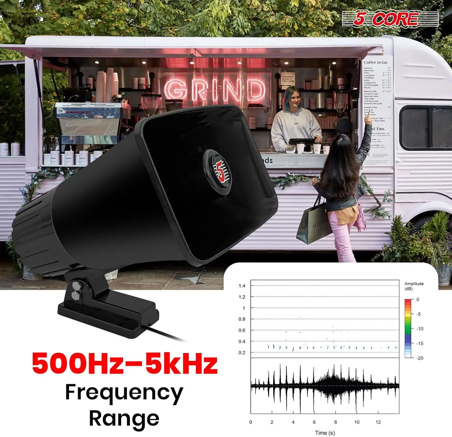 ·This PA horn speaker is built for clear, dependable sound projection in demanding outdoor and mobile environments. With a 250W peak (25W RMS) power rating, 101 dB @ 1W/1M sensitivity, and a focused 500 Hz – 5 KHz frequency range, it delivers crisp voice clarity for announcements and alerts. The durable ABS construction ensures long-lasting performance, helping prevent common failures seen in low-quality loud speakers. Designed for easy integration into outdoor PA systems, trucks, cars, and mobile vending setups, this horn speaker offers consistent audio output without distortion. Its practical size allows flexible mounting, making it a reliable PA speaker for car and truck applications where durability and sound reliability matter most.