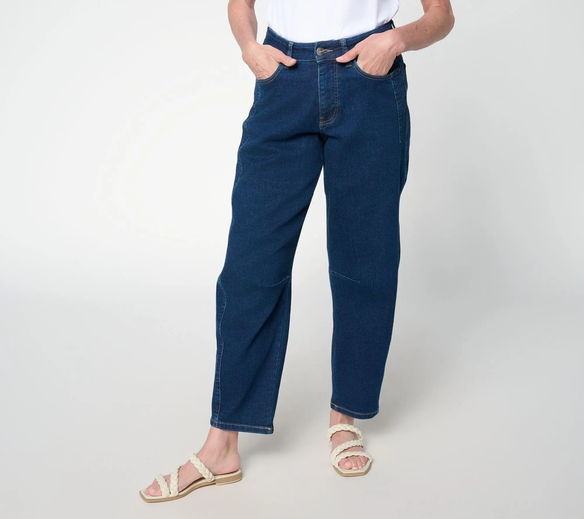 Busy days call for pants that blend style with comfort, making errands or casual outings effortless and chic. Crafted in soft, high-stretch Jet Set denim, these barrel-leg jeans offer an easy fit that moves with you and delivers the look of denim with the comfort of yoga pants. From Warp & Weft.