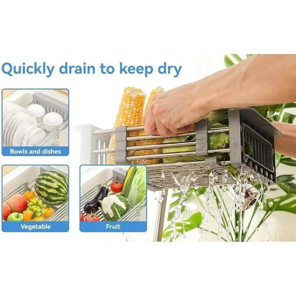 Telescopic rack extends to fit various sink sizes, providing a customizable and space-saving solution. Perfect for small kitchens and RVs, it optimizes counter space. No assembly required, place it over your sink and use it right away.