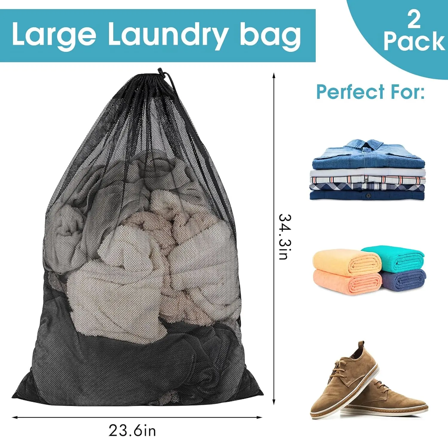 ·Large Mesh Laundry Bags: The laundry bag measures 23 x 34 inches, providing a spacious interior that can handle large amounts of clothing, such as blankets, sheets, ropes, tablecloths, bath towels, down jackets, etc., 2 Pcs enough to meet your normal use