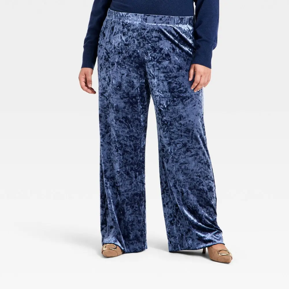 Add a touch of sophistication to your wardrobe with these Crushed Velour Pull-On Pants from A New Day. Made of polyester-spandex blend fabric for comfy wear, these low-rise velour pants feature wide legs with a casual fit for a polished look. Designed with a full elastic waistband for a snug fit, these crushed velour pants also have two side pockets for stashing small essentials.