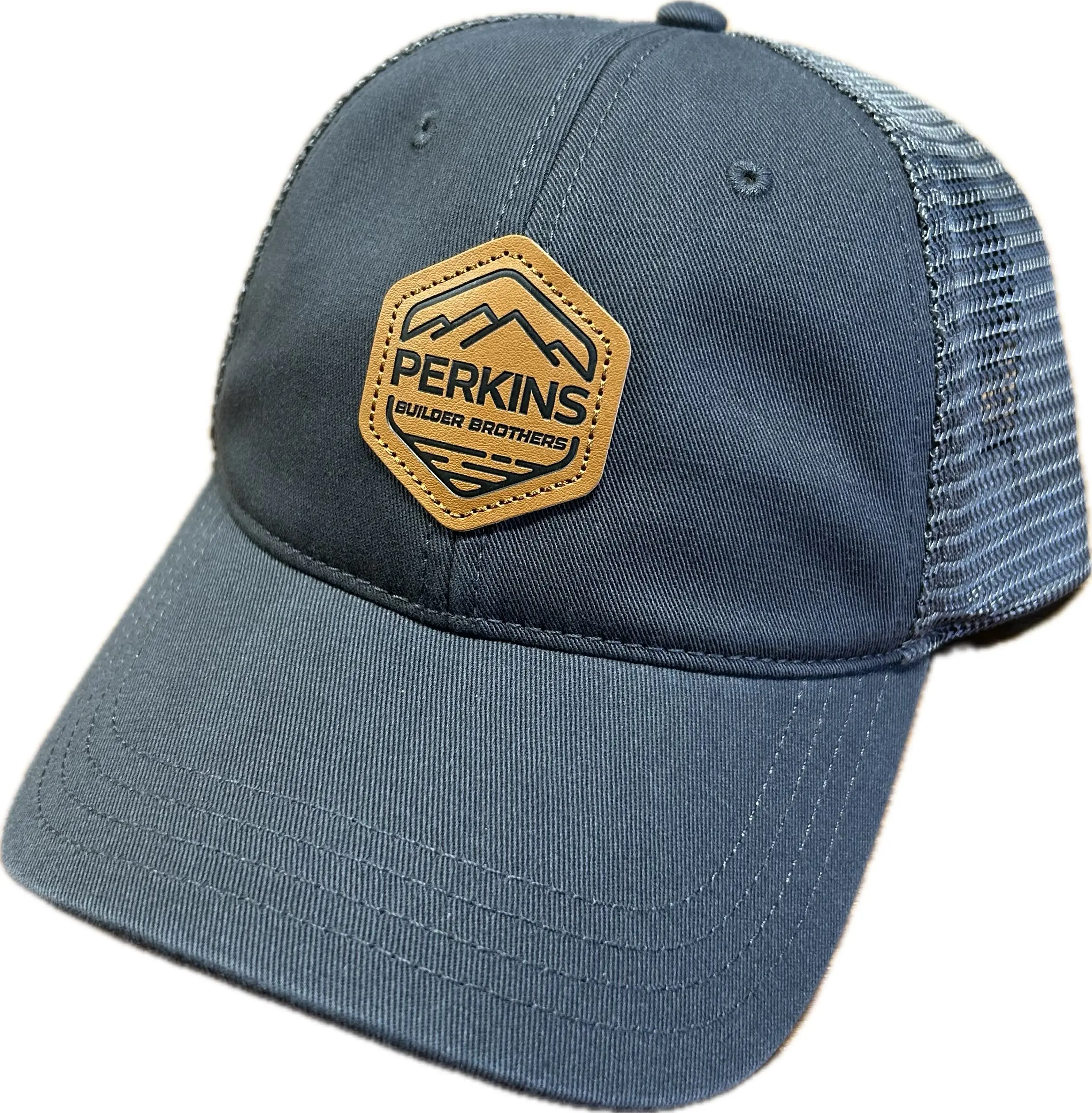 The Perkins Builder Brothers have high standards....and that doesn't change when it comes to hats. We choose to wear the best...and that means we wear Richardson Caps! These Perkins Builder Brothers hats are decorated with a Debossed Faux Leather Patch that is stitched onto the hat to provide a clean and classic looking hat for everyone to be in envy of.