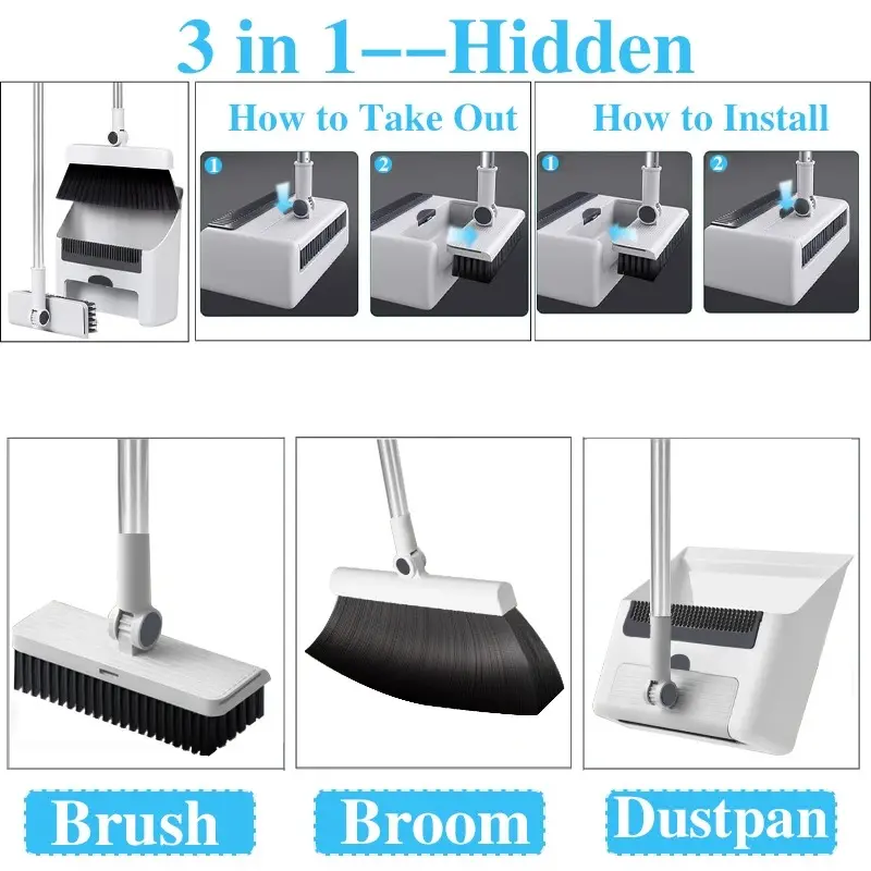 Multi-Function Broom and Dustpan Set with Long Handle for Home & Office
