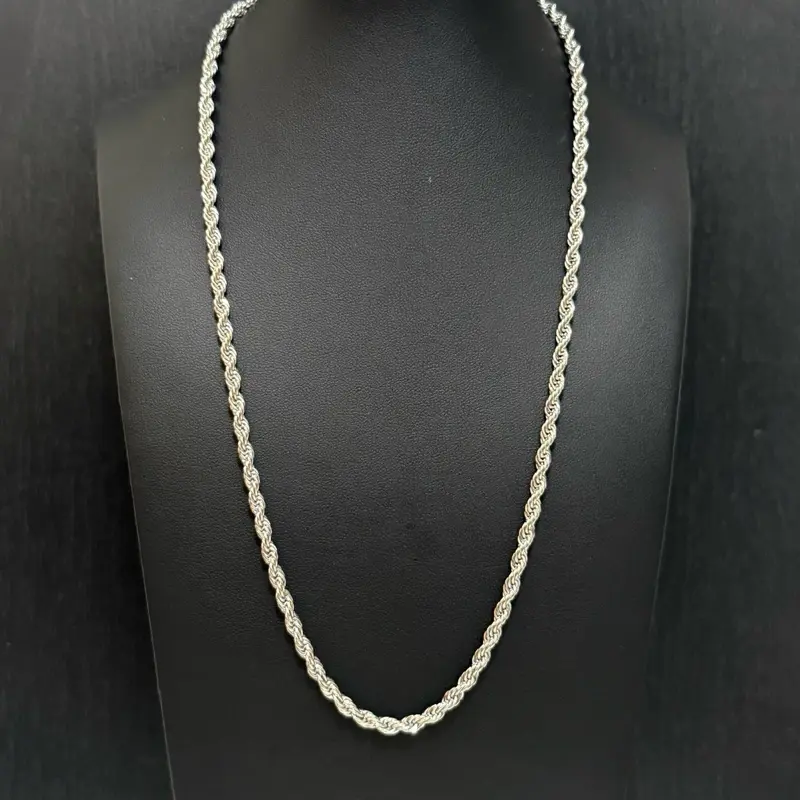 Level up your jewelry game with this 4mm White Gold Filled Rope Chain (20”) — a clean, bold look with everyday durability.