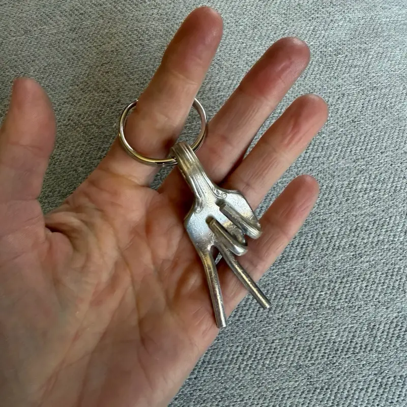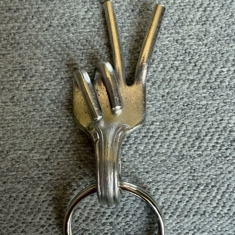 Handmade keychain made by me from vintage silver plated fork! All my pieces are made from silverware found at estate sales, since this is a vintage fork there are imperfections in the metal as shown in pictures and video.