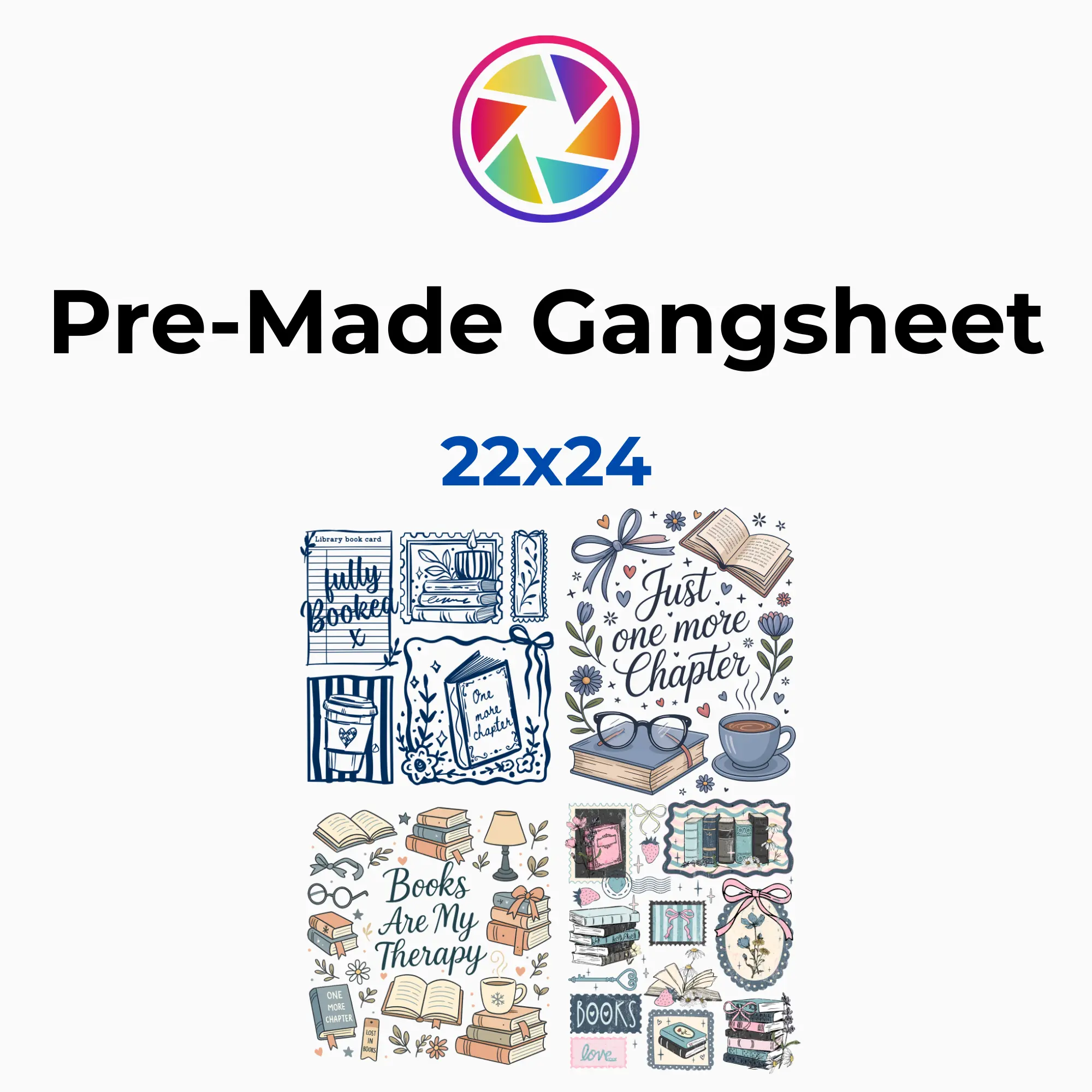 Our Book Lover 22x24 Pre-Made Gang Sheet is perfect for creating cozy, aesthetic apparel your customers will love.