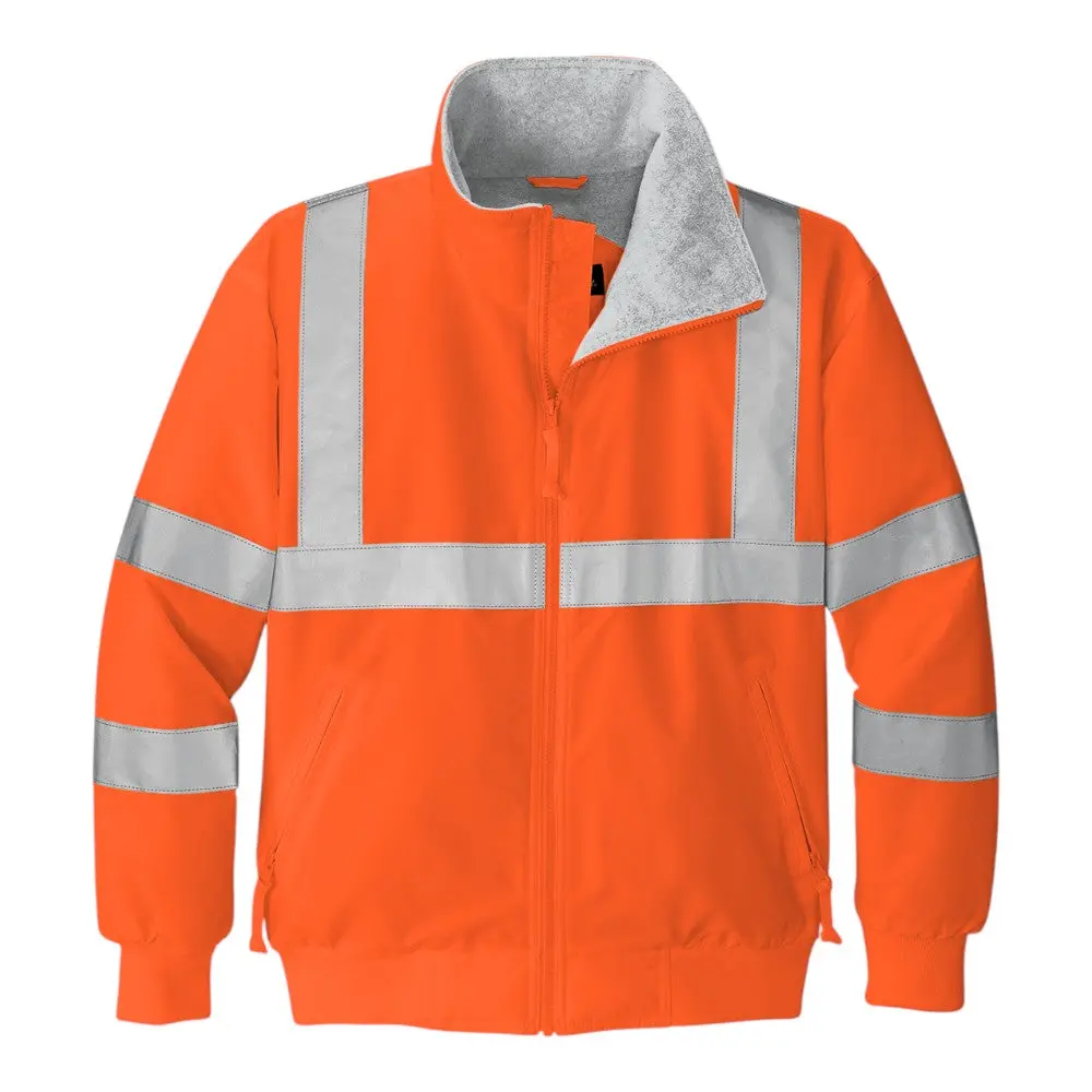 Stay safe and protected in this water- and wind-resistant jacket designed for enhanced visibility. Made with a durable polyester shell and cozy fleece lining, it combines comfort with functionality. Reflective taping ensures you are seen in low-light conditions, while multiple pockets offer convenient storage.